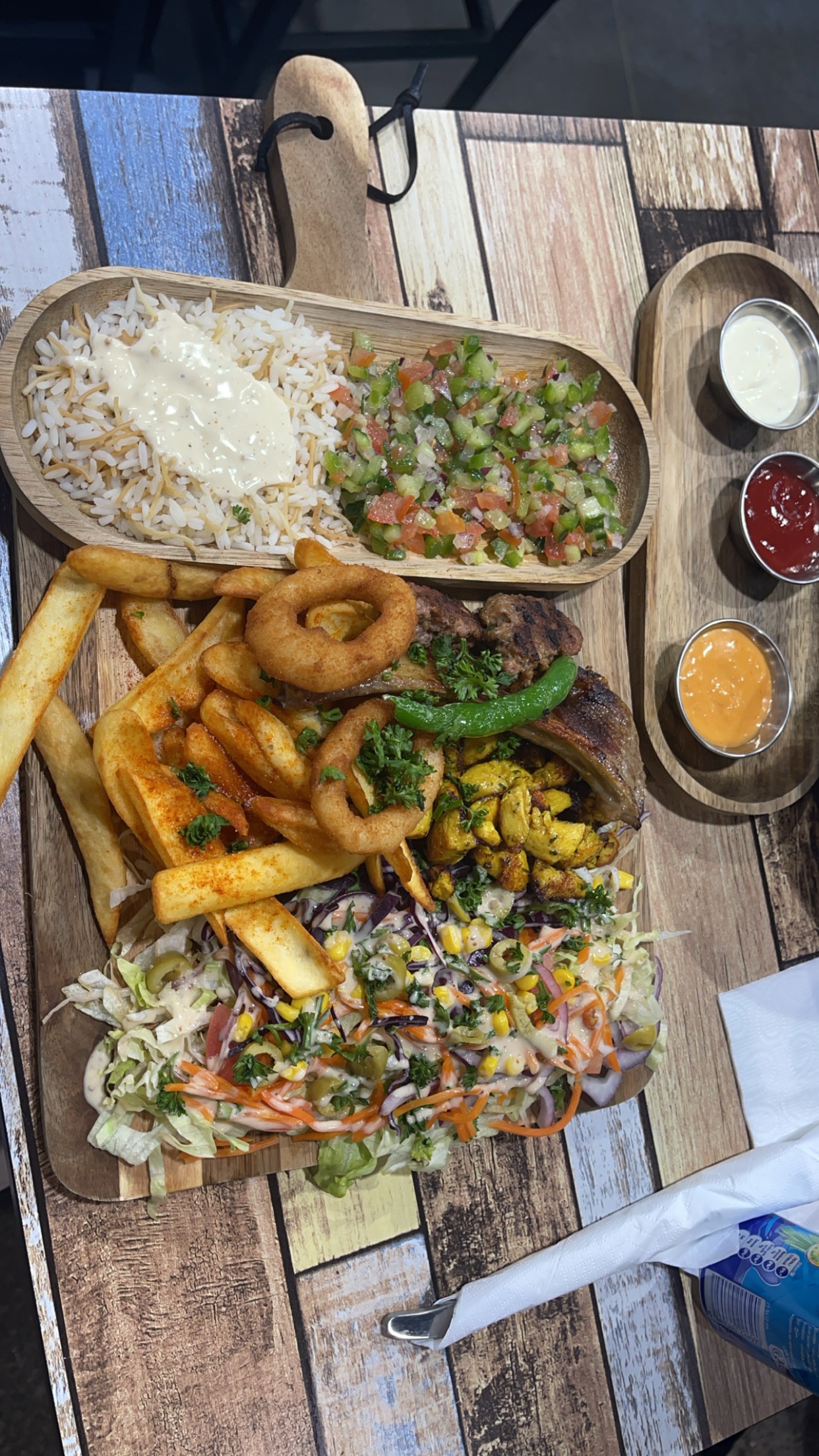 Très bon accueil endroit très propre la salle est grande jolie décoration .. Le choix est variés , nous avons pris une assiette brochette très copieux servie sur une planche trop stylée Le goût est là la qualité est là la qualité est là J’ai rarement manger avec des saveurs comme la dans une assiette que l’on peut penser classique Foncez je re commande ++++++