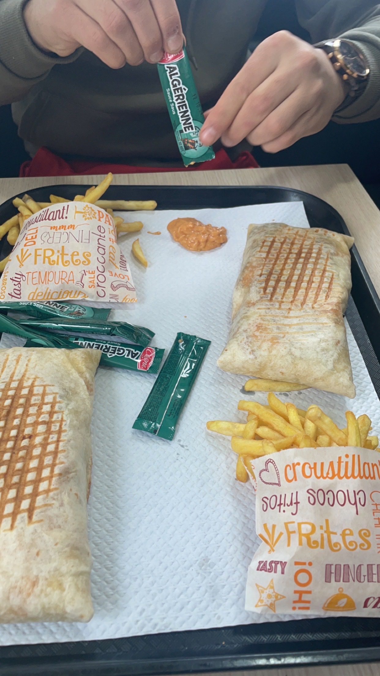 J'ao ete déçu ! On a recu des Tacos memr pas bien remplis! J'en ai deja mange! Ils sont delicieux mais le dernier a ete fait rapide mais pas aussi garnie qu'il ne devrait etre