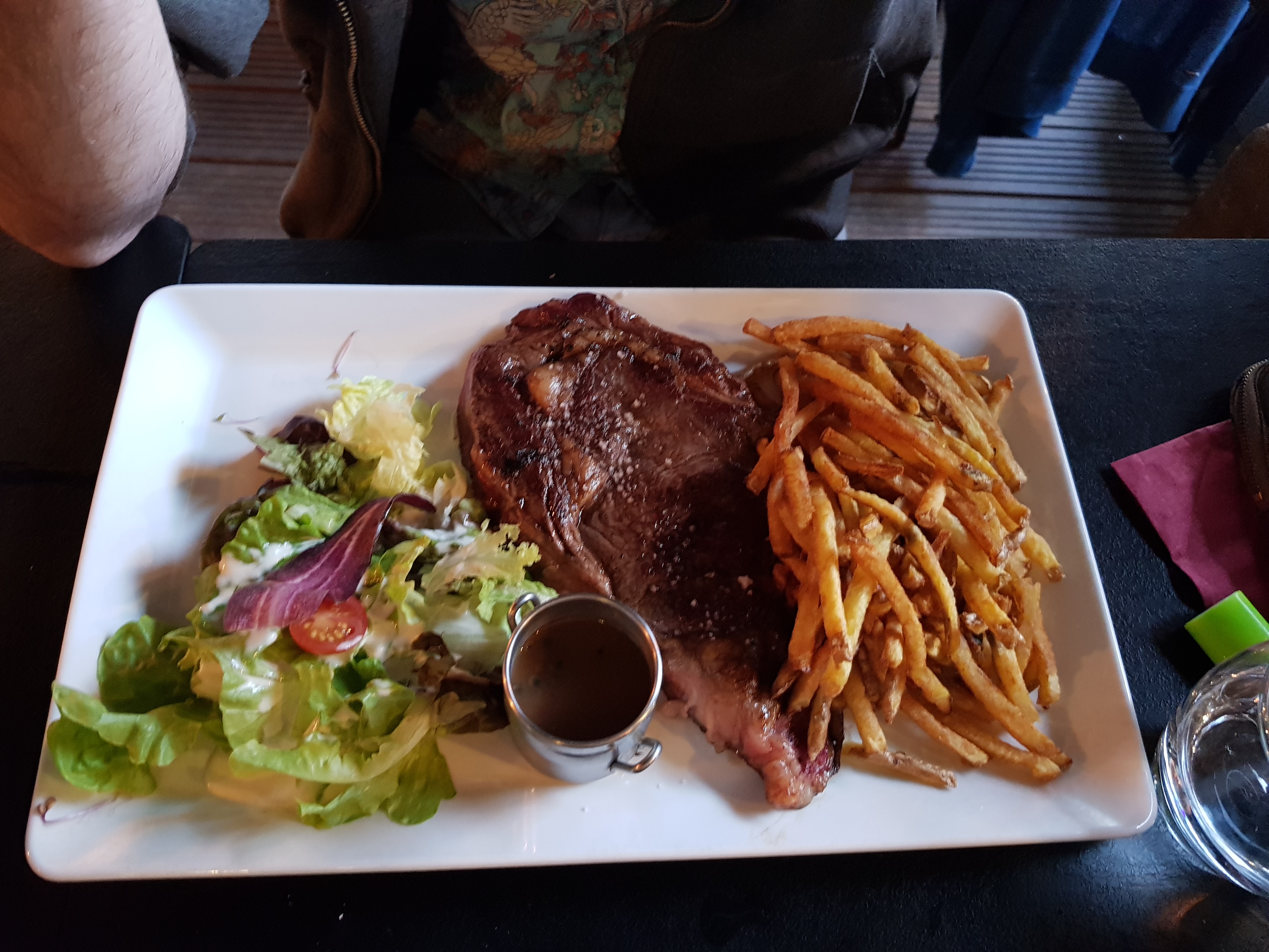 Malheureusement notre plus grosse déception de notre voyage en bretagne. Nous en attendions plus étant donné les bonnes notes et le prix. Ce ne fut pas a la hauteur, le steak était moyen, le burger passable et les frittes étaient horribles (huile trop usée? Frittes recuites ? Je ne sais pas) nous en avions a la fin pour 60€ avec deux plats et deux verres de vin, dans un restaurant proche pour 70€ nous avions eu de meilleurs plats, des desserts plusieurs verres d’alcools… peut-être sommes-nous tombés un mauvais jour ?