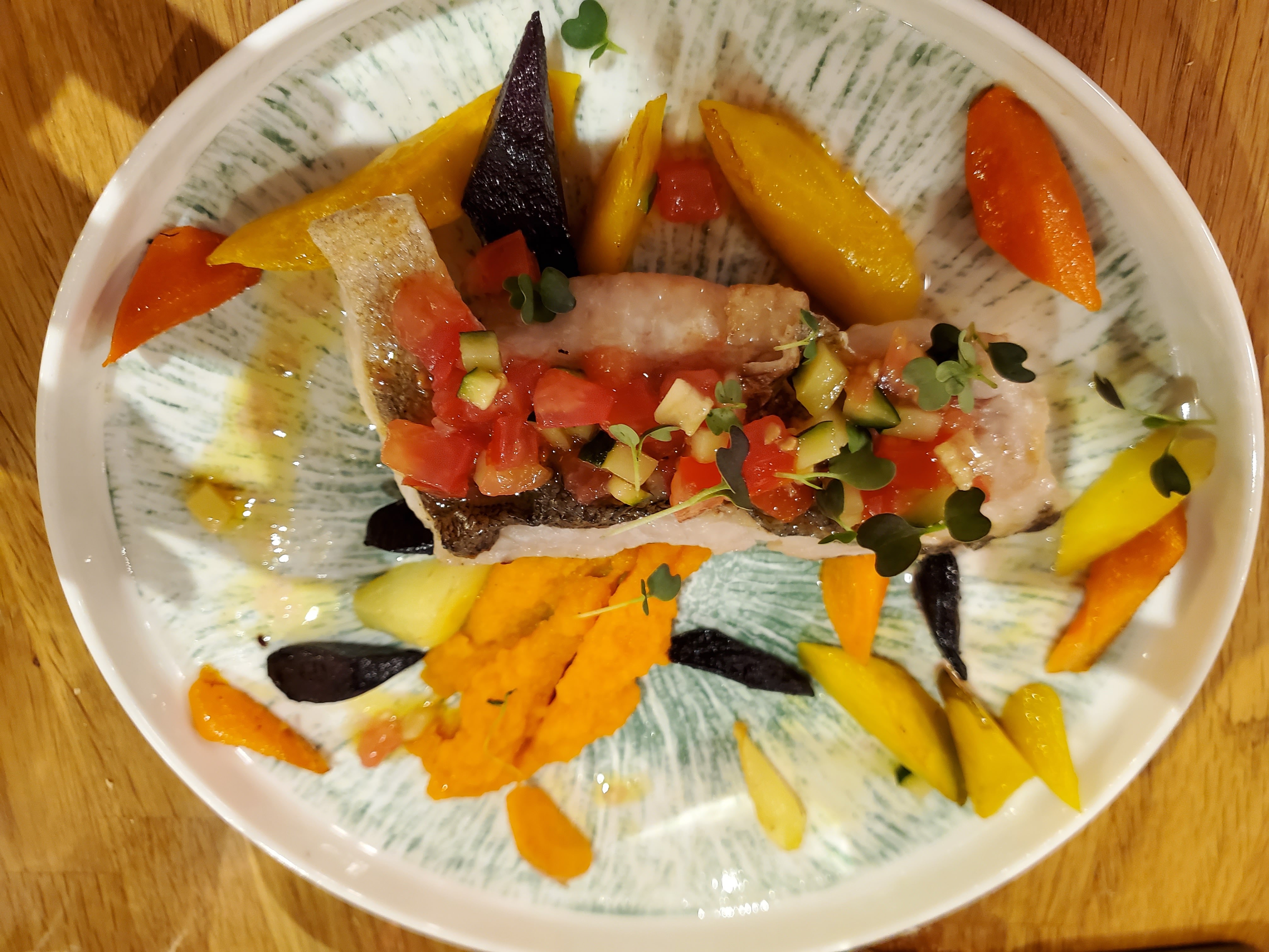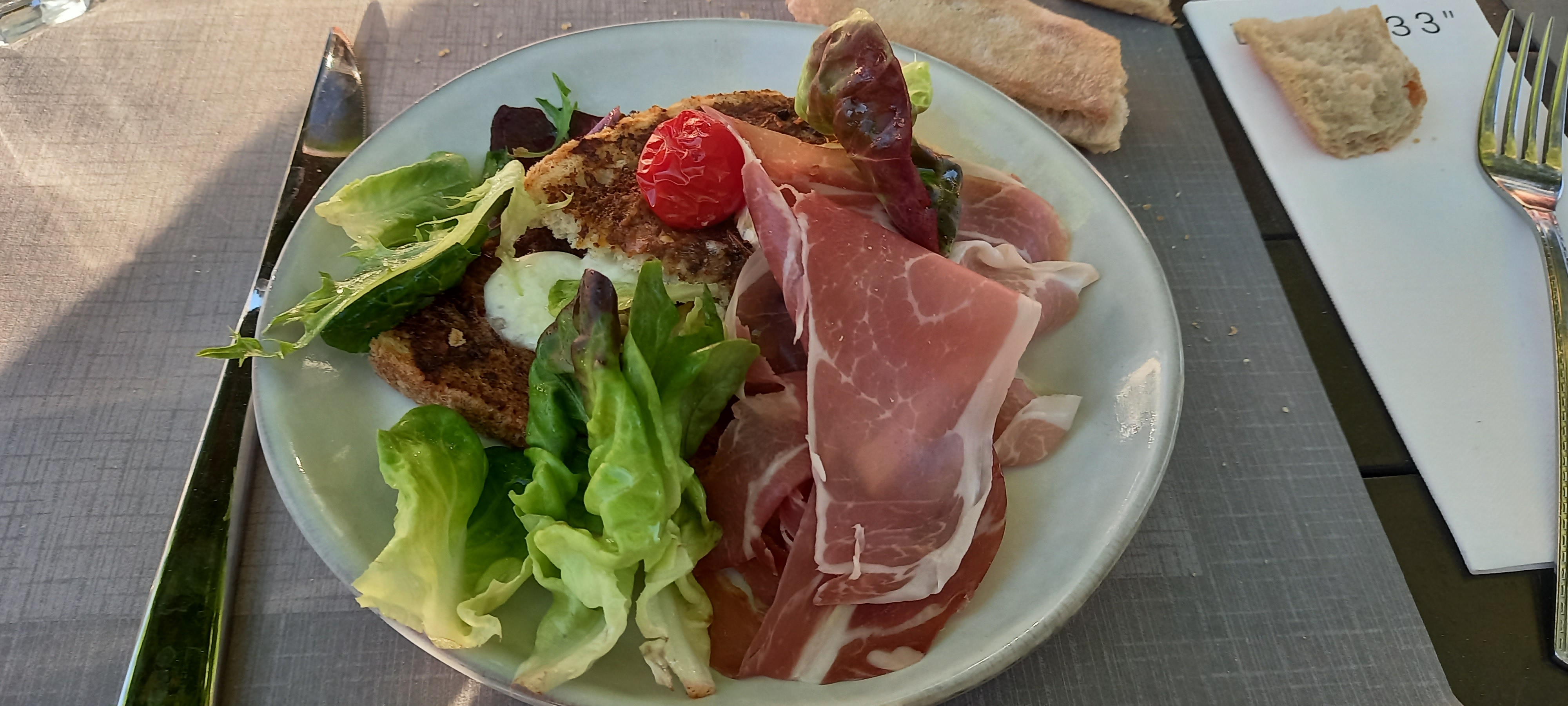 Notre premier resto depuis longtemps. Quel plaisir de se trouver en terrasse au soleil. La serveuse est très agréable. Les temps d'attente sont très raisonnables. Nous avons pris le menu de la semaine à 24,90€. Les accras de poulet étaient bons mais auraient pu être améliorés ave une épice un peu peps. L'arancini et la brandade étaient très bons. Les quantité sont raisonnables. Le nems aux fruits furent une découverte! Nous reviendrons volontiers.