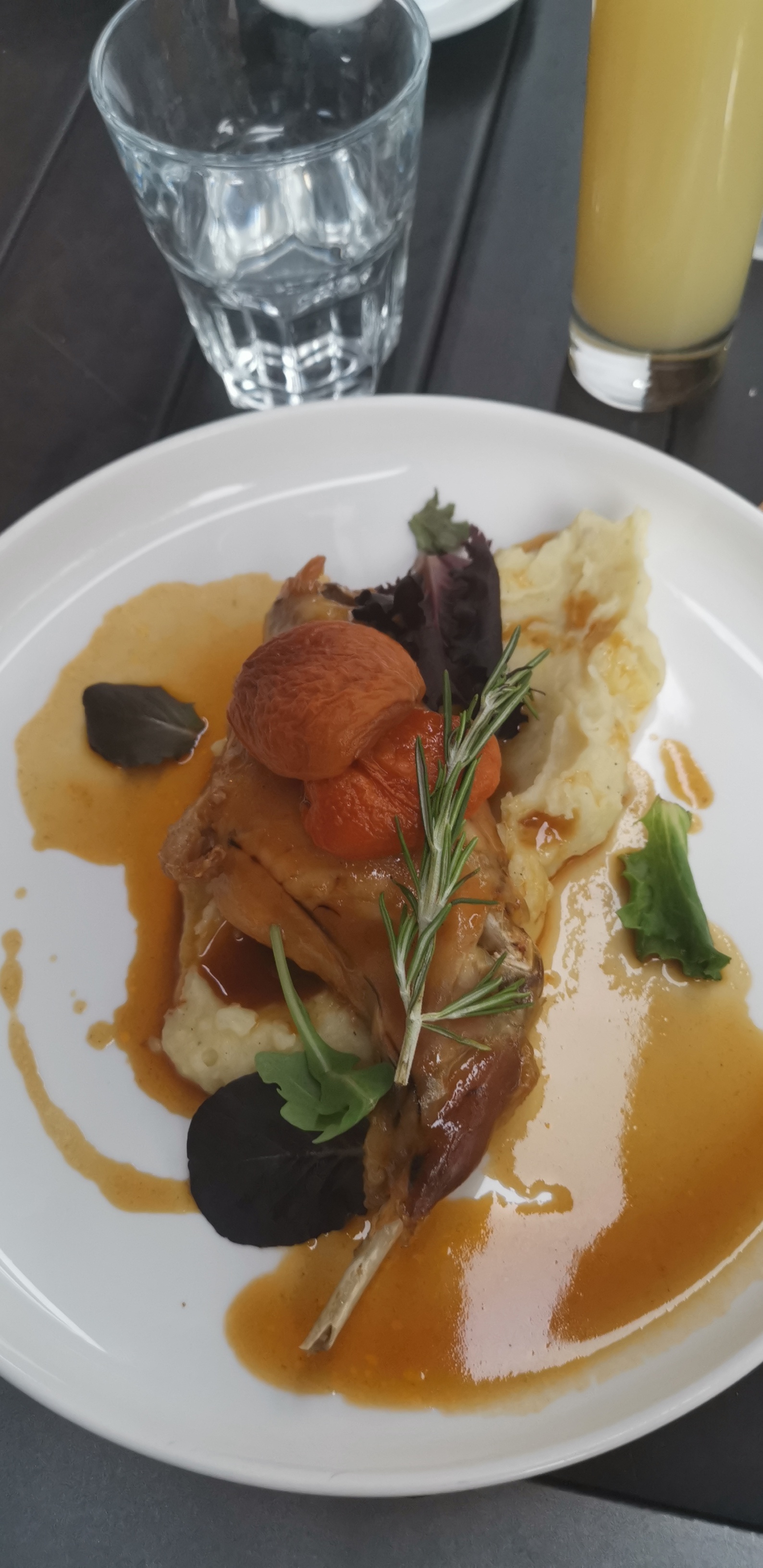 Service un peu long . Tarif élevé pour la qualité . 3 petites cuisses de coquelet au lieu d'un demi coquelet proposé et purée fade .