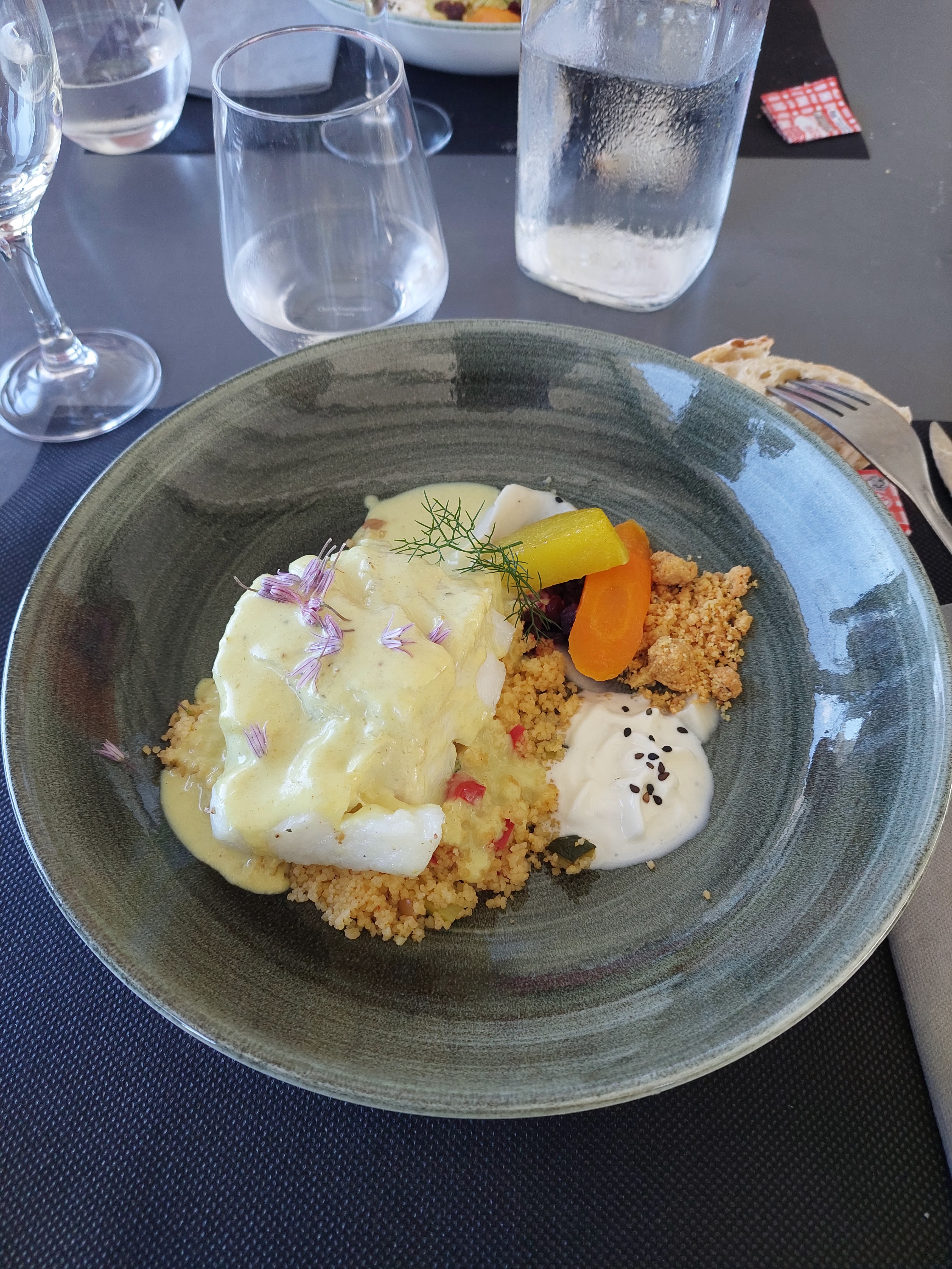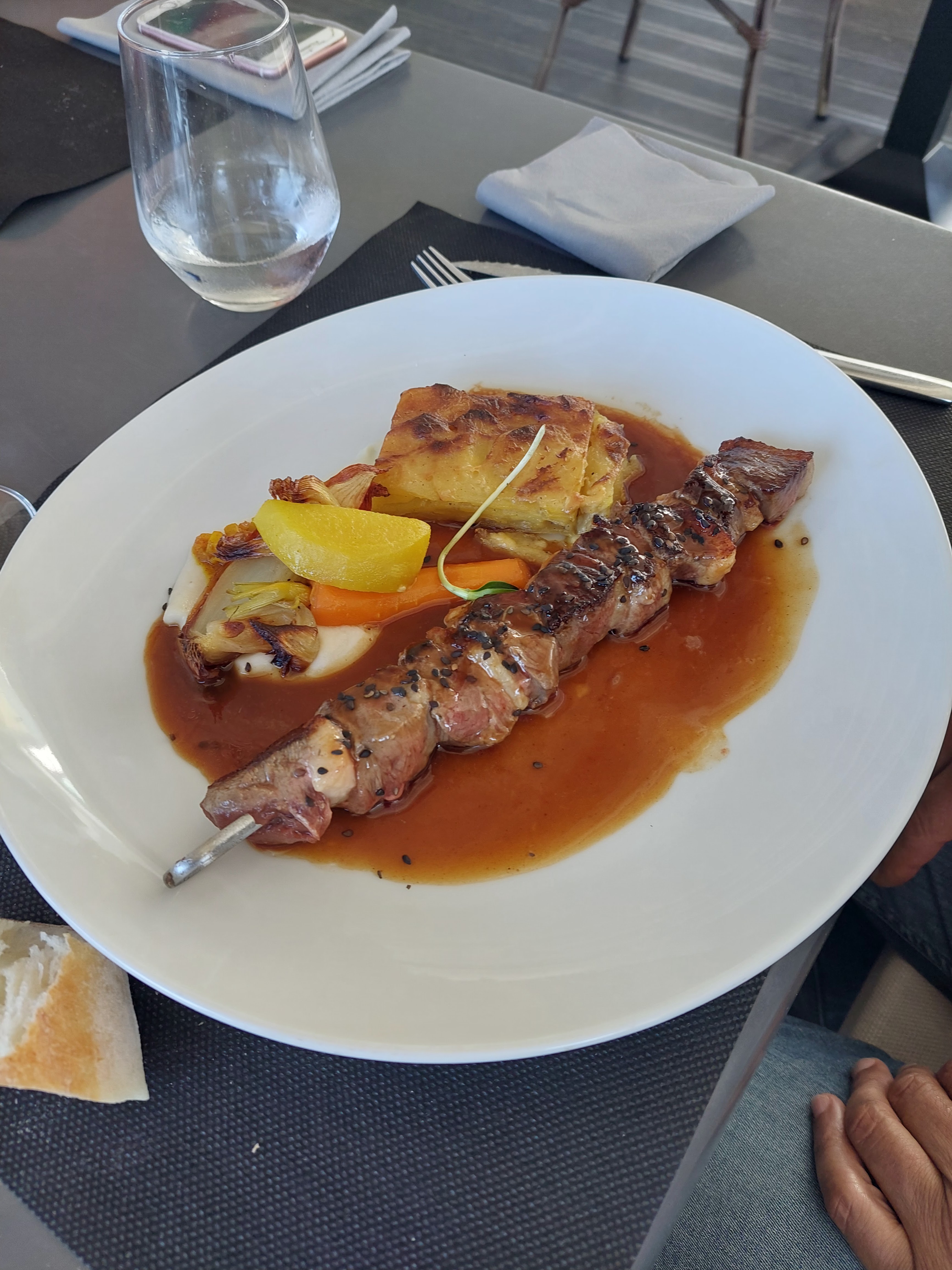 Très très bon restaurant où nous avons passé un super moment. Un bémol dommage qu'il n'y ait pas de VRAIS cocktail sans alcool au lieu de servir un simple jus de fruits sur un peu de grenadine. Nous espérons en avoir en septembre. Autrement c'est génial cuisune, service et personnel sans oublier la vue.