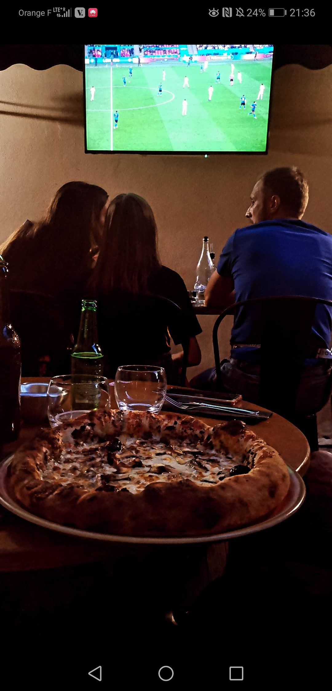Il y a longtemps que je n ai pas mangé une pizza aussi bonne , faites avec de la semoule plus légère et la sauce tomate bien assaisonnée. L accueil très agréable ,avec pour ambiance , soir de montée d Ajaccio en ligue 1. Allez y les yeux fermés