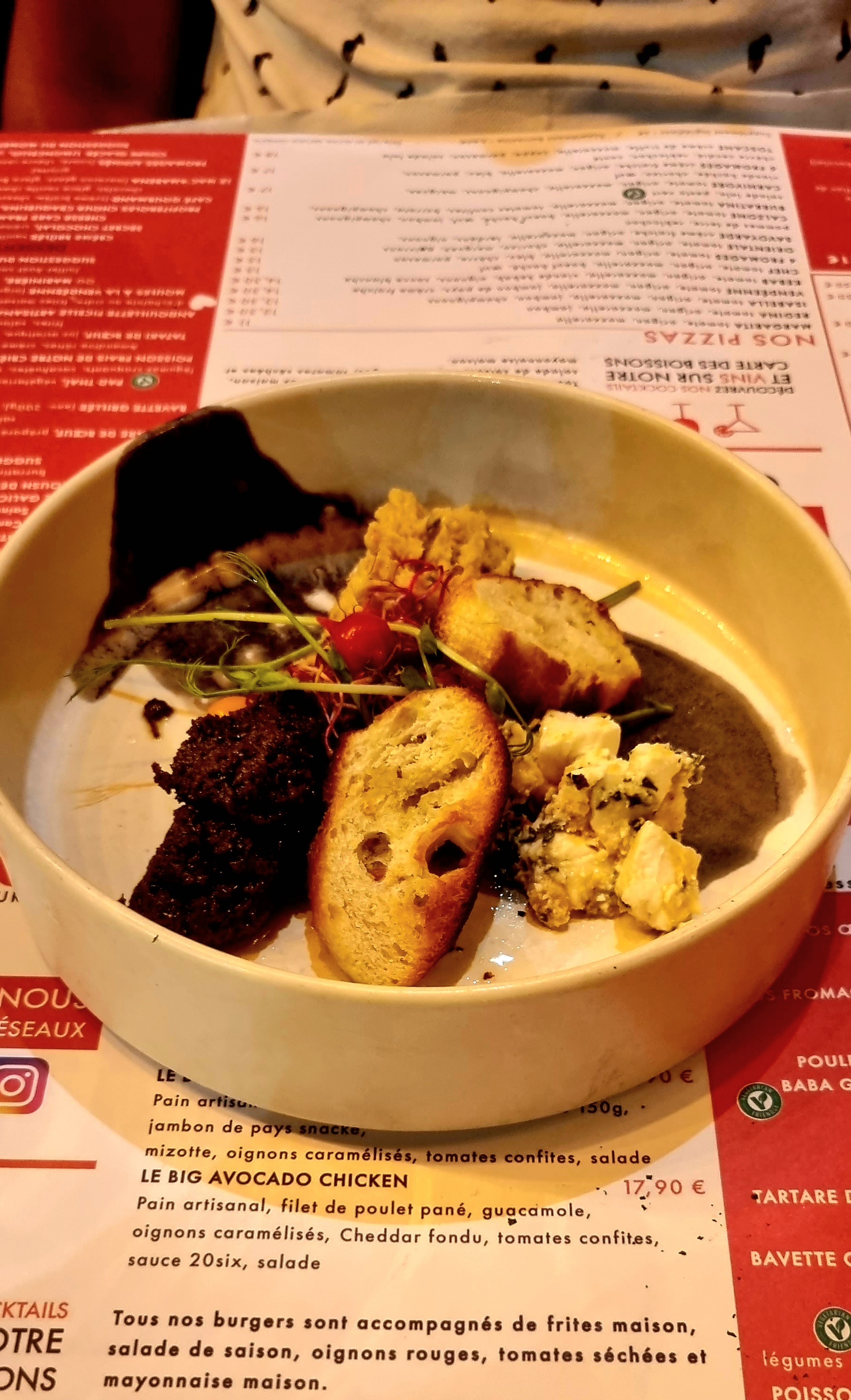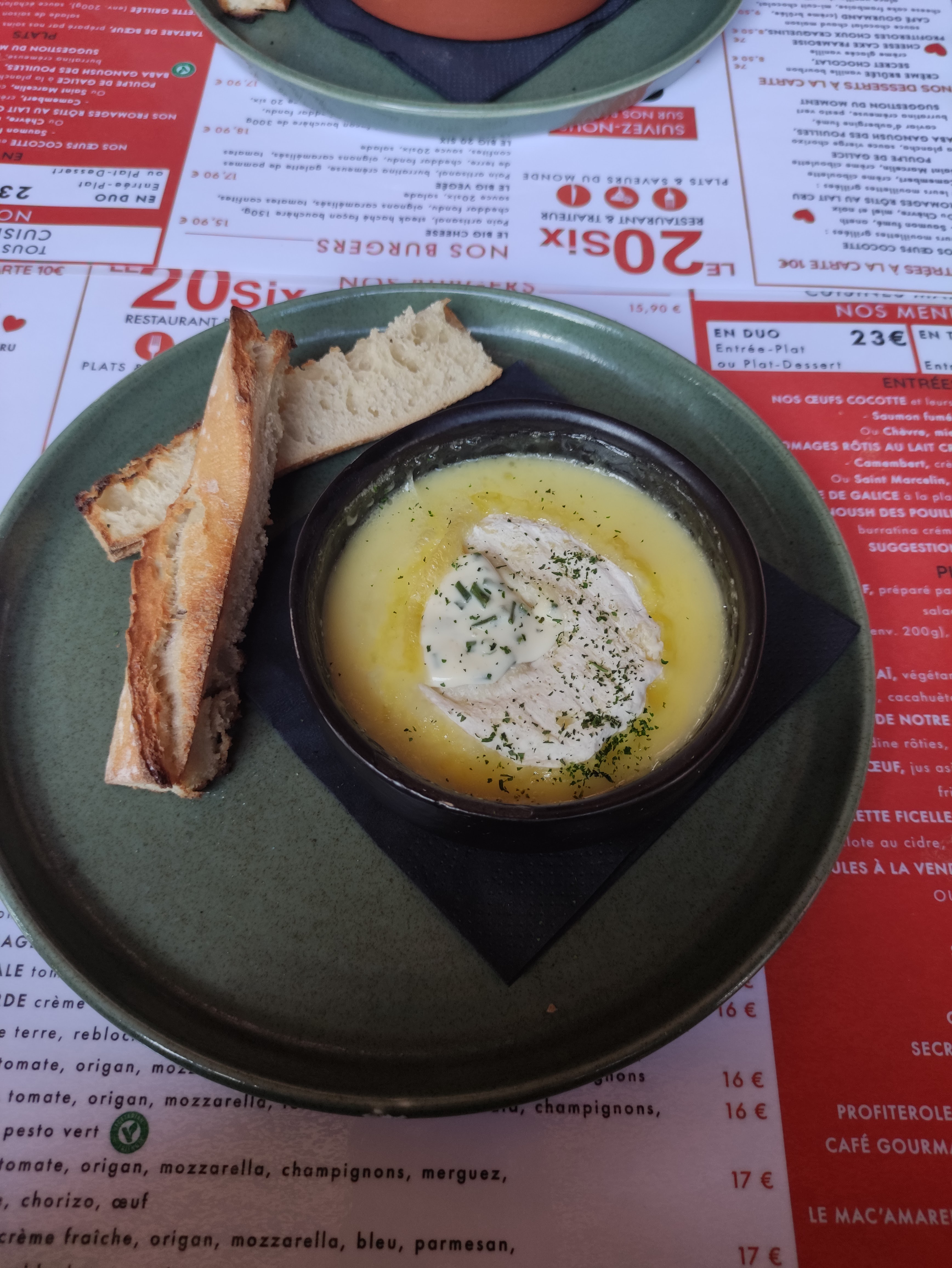 De très bon petit plat qui change des restaurants traditionnels, un œuf cocotte et un camembert en entrée INCROYABLE, félicitations !