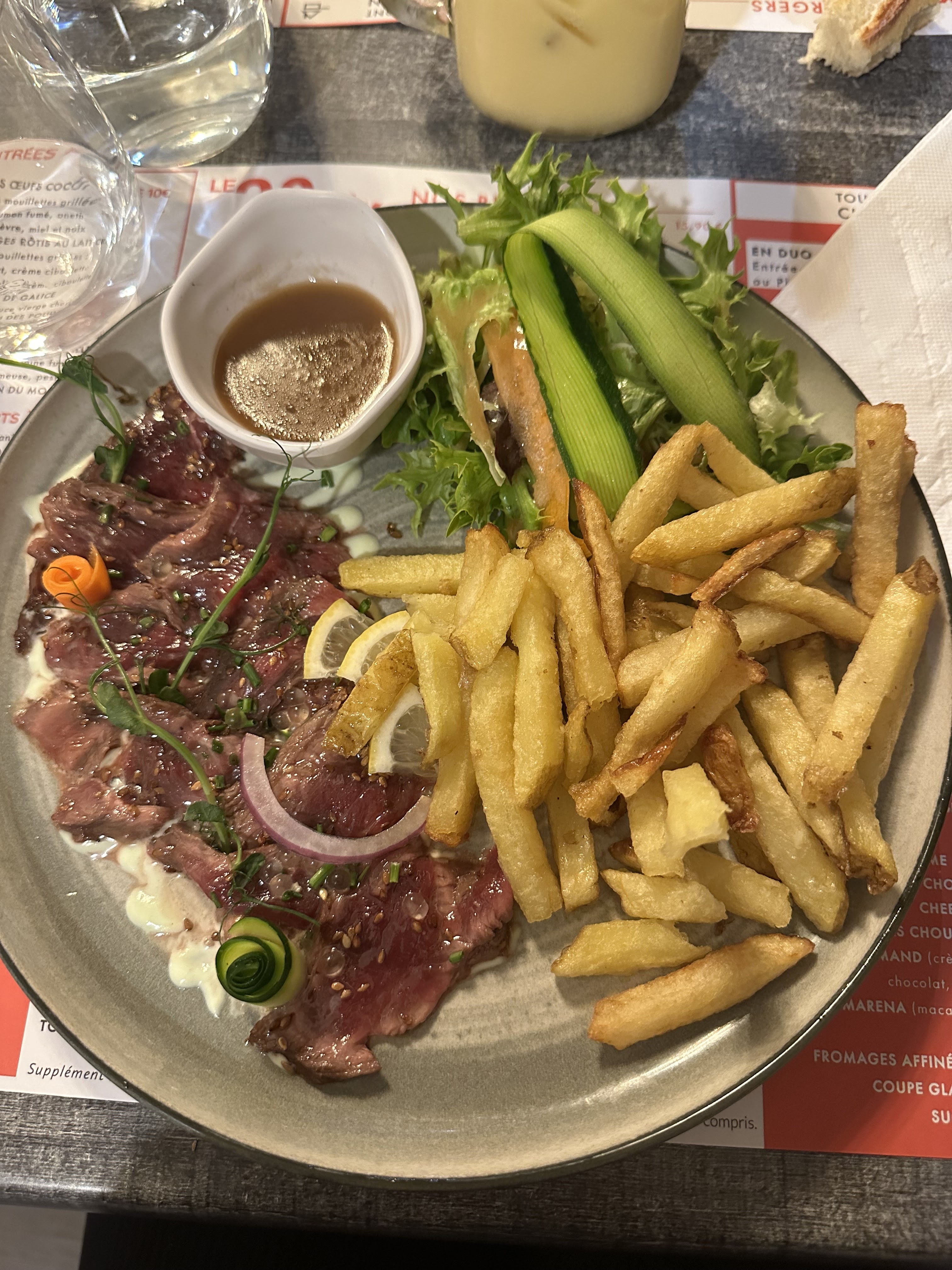 À première vue si je n avais pas regardé les avis je ne serai pas venu...déjà moins bien situé que les autres restaurant étant dans une rue pas très commerçante ...mais il faut y aller patron sympa et serveurs idem. Bonne cuisine inventive. Le tataki de bœuf est superbe, bavette aussi et bons desserts. Petite surprise pour les enfants. Il faut réserver. Belle découverte.