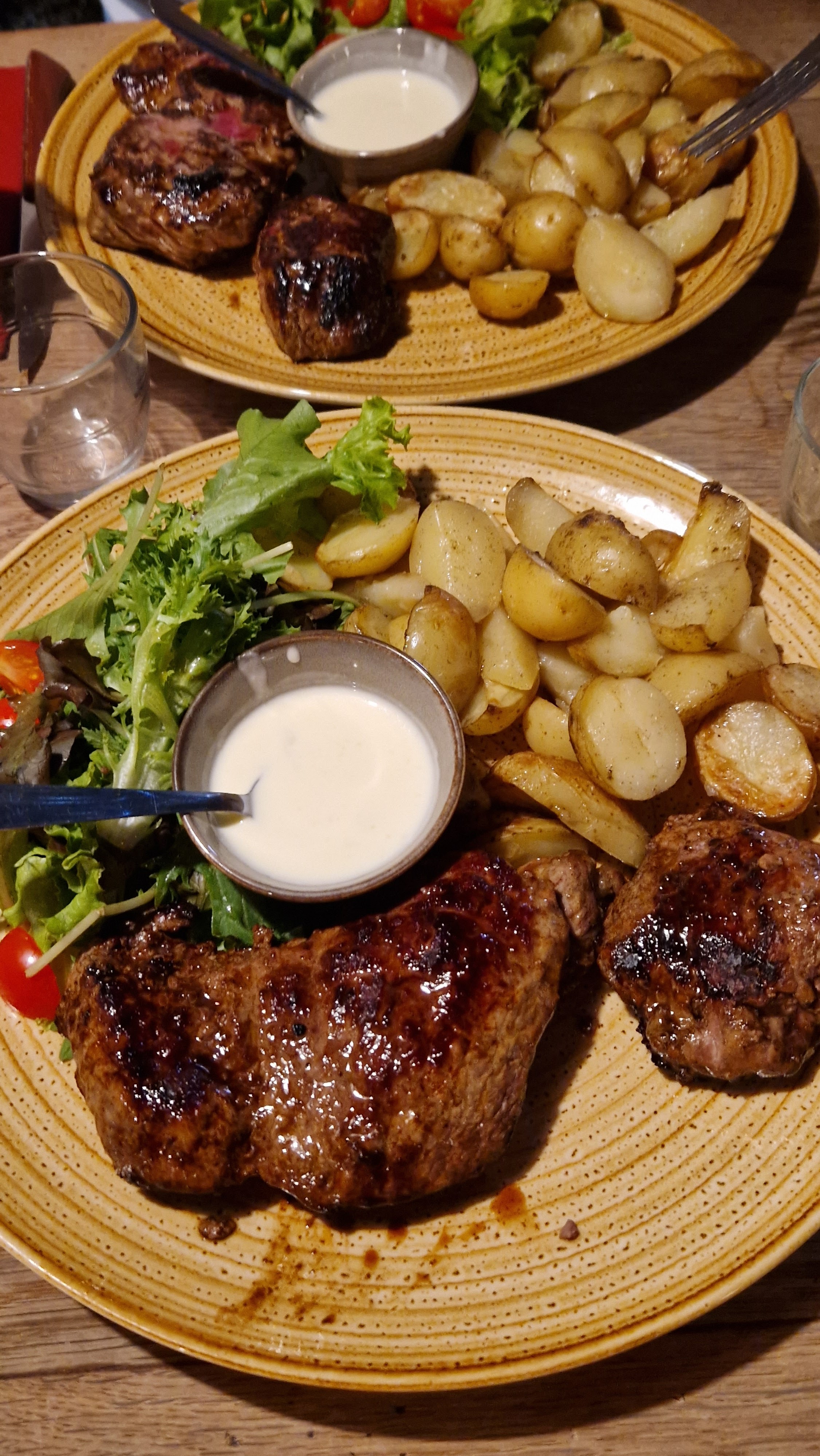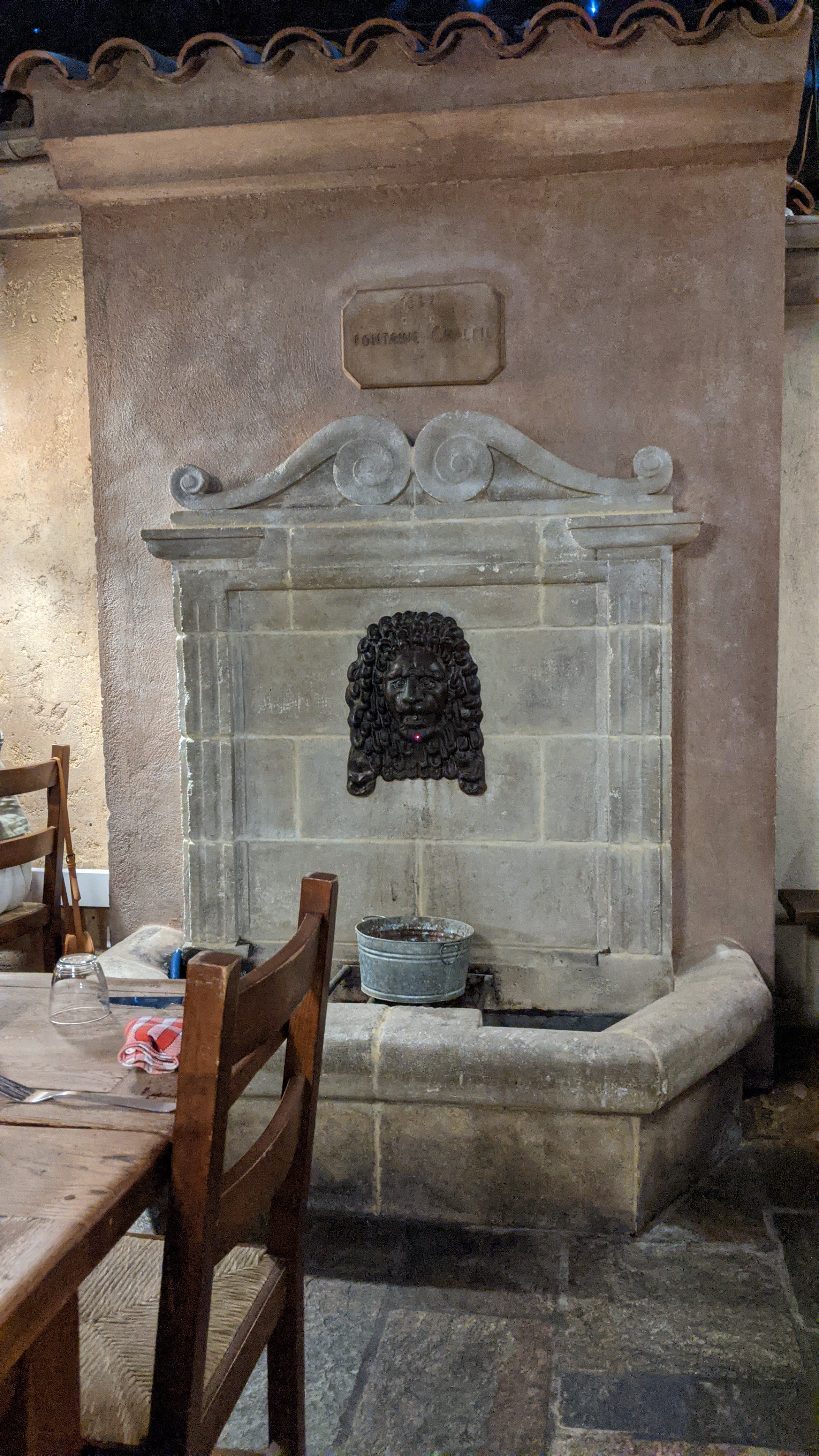 Décor sympa à l'intérieur du restaurant avec sa fontaine d'eau pour se servir à boire, très bonne cuisine, plats très copieux et surtout très bon rapport qualité prix. A recommencer sans hésitation.