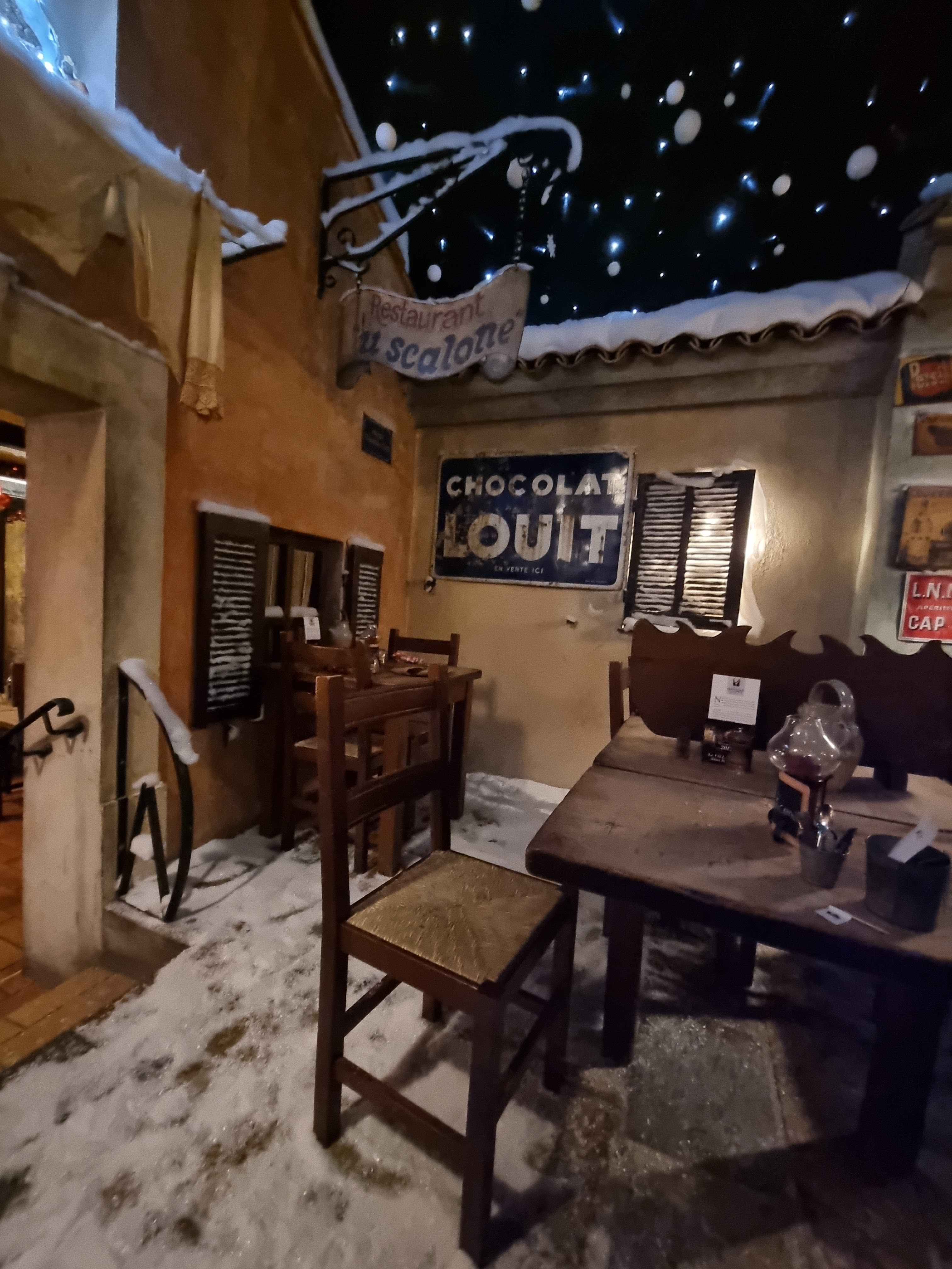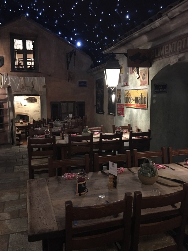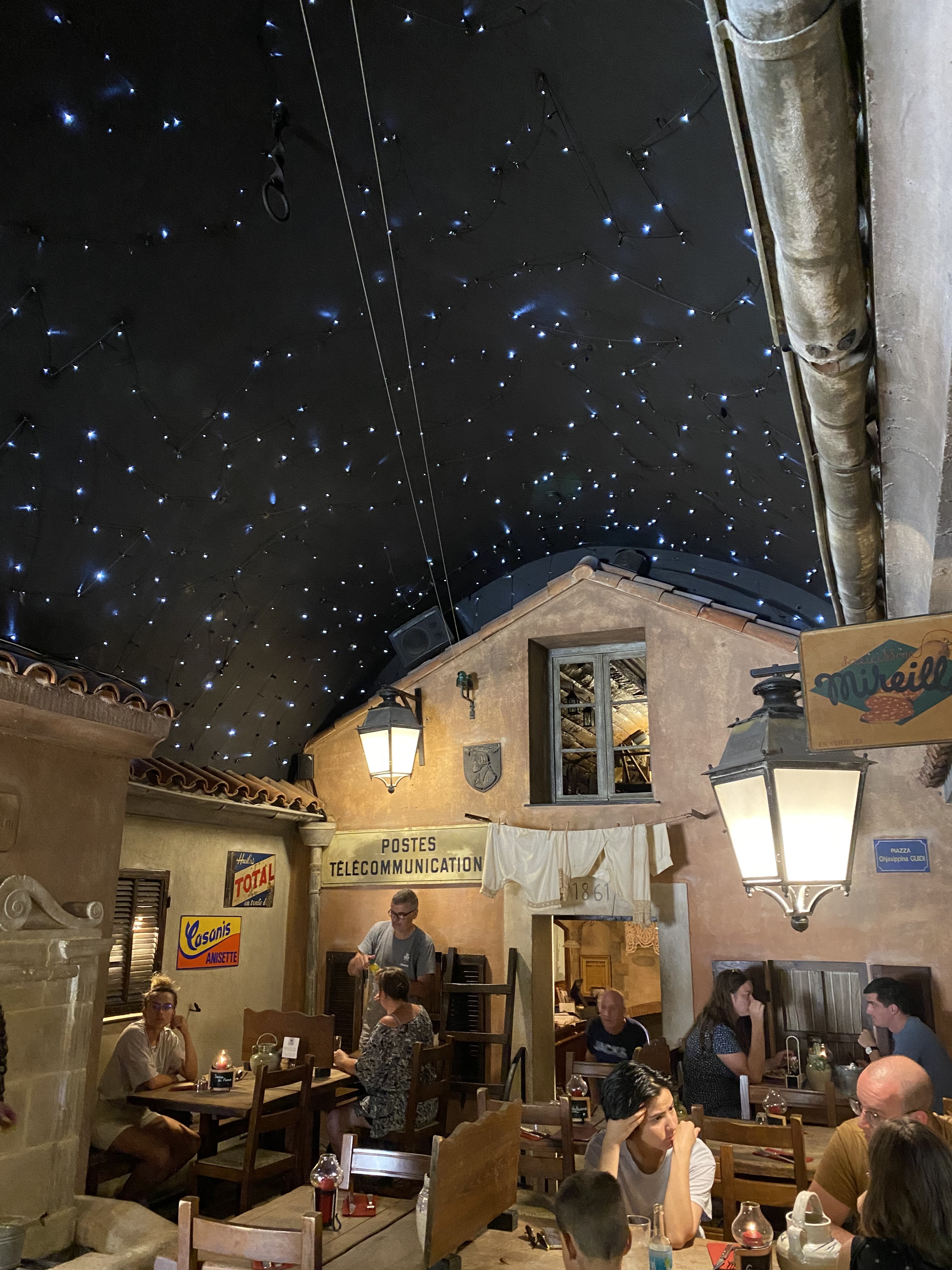 Expérience inoubliable ! Un dîner sous un ciel étoilé dans un restaurant qui a reconstitué la place d'un village ancien corse. Dépaysement garanti ! Menu unique à 39,50 euros : 2 entrées, 1 plat, Fromage et dessert Cuisine corse généreuse et délicieuse, vin corse et eau à volonté que l'on va chercher à la fontaine. Service affairé (beaucoup de monde) mais professionnel Joyeuse soirée conviviale !