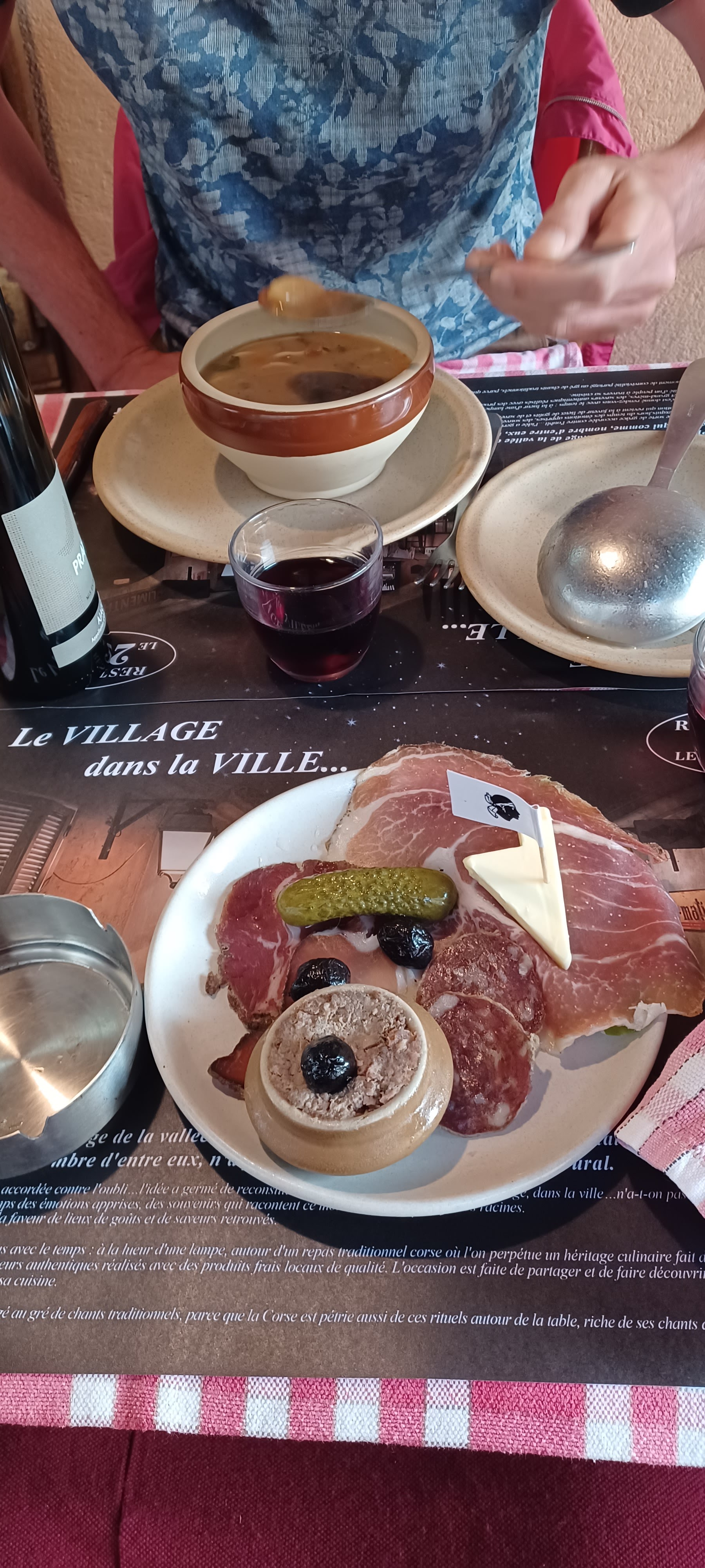 Attention, il vaut mieux venir à ce restaurant avec une bonne grosse faim ! Le service est hyper accueillant, les plats copieux, le lieu charmant. Comment ça marche ? Il y a un menu unique avec quelques choix. Les plats sont uniquement corses, copieux (ah je l'ai déjà dit ?), très bien cuisinés et savoureux. Je dois vous avouer que nous en sommes parties en roulant. Mais nous y avons passé un très bon moment ! Petit détail : pour remplir votre carafe d'eau vous devrez aller à la fontaine, à l'ancienne.