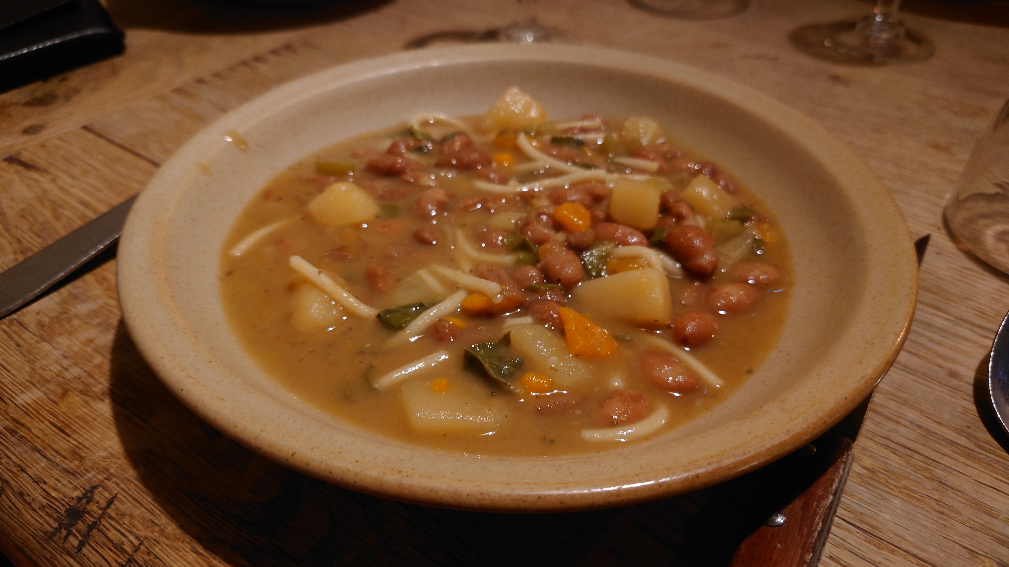 Une très belle découverte pour un dîner en soirée. C’est copieux authentique et généreux. Dans un cadre typique où la simplicité est de mise. Nous avons adoré les serviettes et les verres de grand-mère, la miche de pain posée sur la table et la gentillesse des serveurs et serveuses