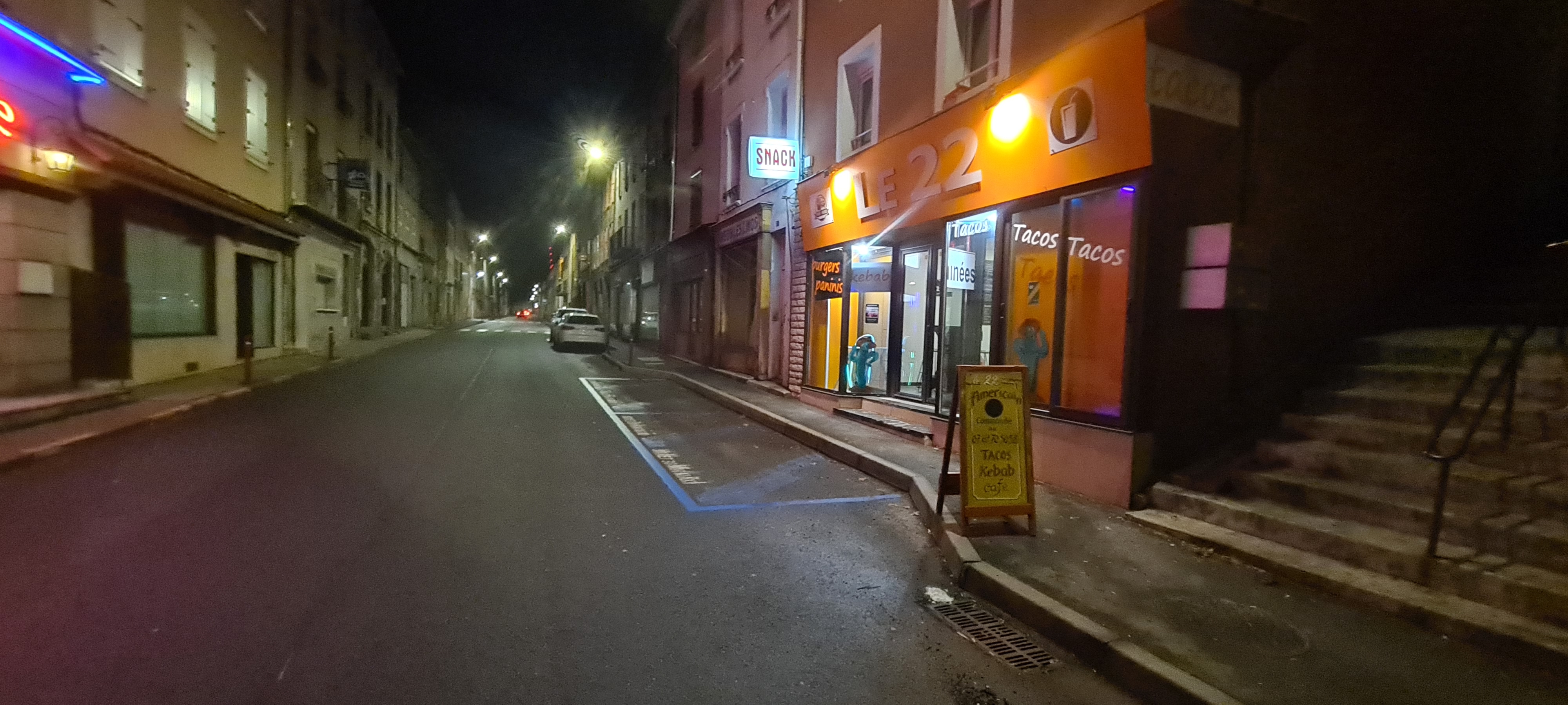S'il vous est impossible de vous rendre au cinéma voir une bonne comédie comique, je vous conseille de vous rendre au 22. Bienvenue dans le théâtre de l'absurde : prise de commande par une très gentille demoiselle qui se faisait très mal parler par une collègue (sa mère?), annonce de 45 min d'attente pour au final attendre 1h20 pour 5 sandwichs (dans lesquels ils n'ont pas lésiné sur la sauce il faut le dire), au moins 2 coupures de courant du snack (quid de la chaine du froid ...?).. au bout de l'attente interminable (au cours de laquelle nous avons eu le loisirs de regarder le personnel boire des canettes et manger un kebab) une dame mal aimable et sans masque nous apporte un sachet en nous demandant de payer plus que ce que nous avions réglé au préalable. Aucun geste commercial ou excuse : les boissons ne nous ont même pas été données. Bref, un véritable sketch.