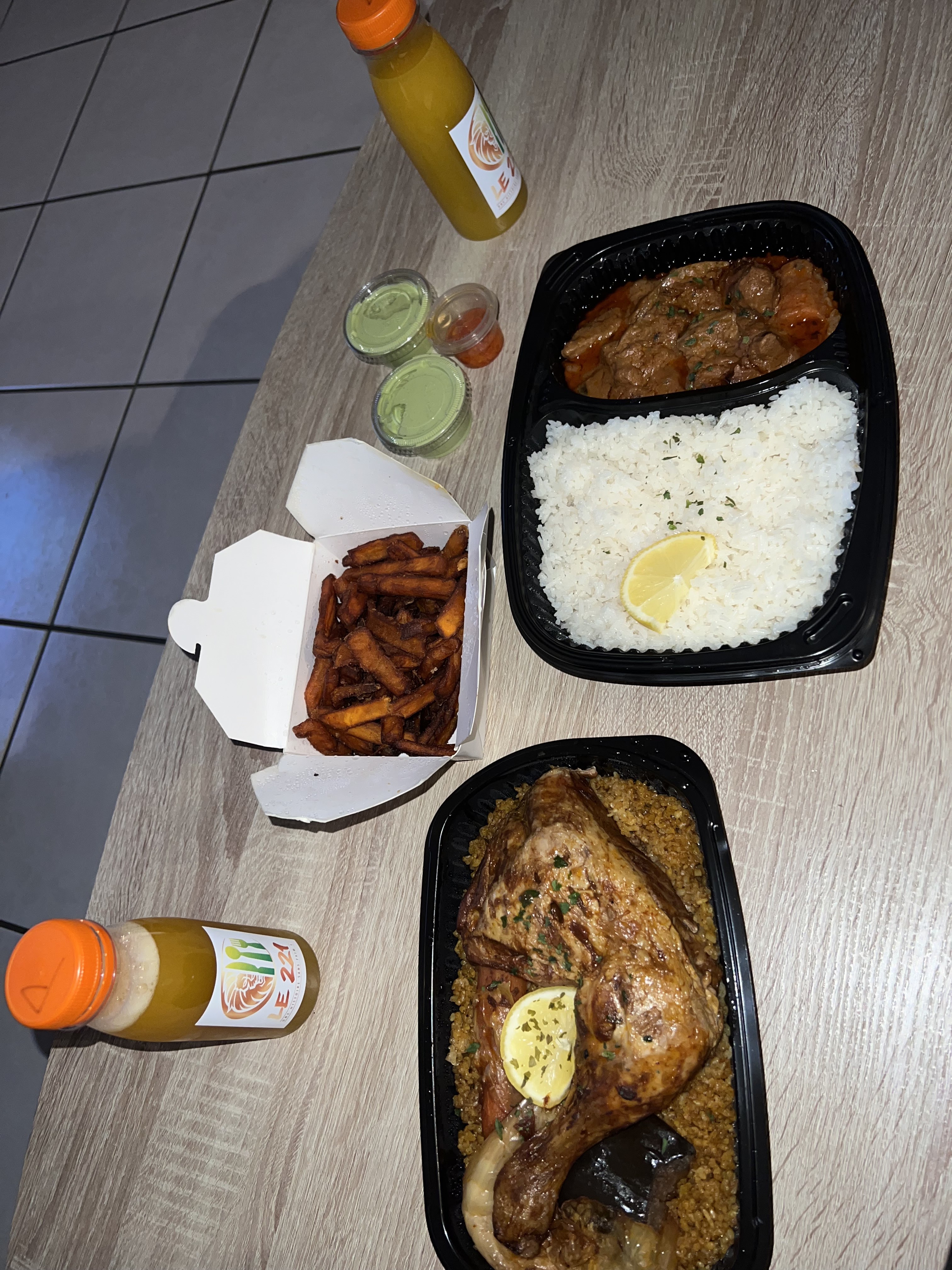 Mafe boeuf et thieb poulet excellent rien a dire ! La livraison est tres rapide :)