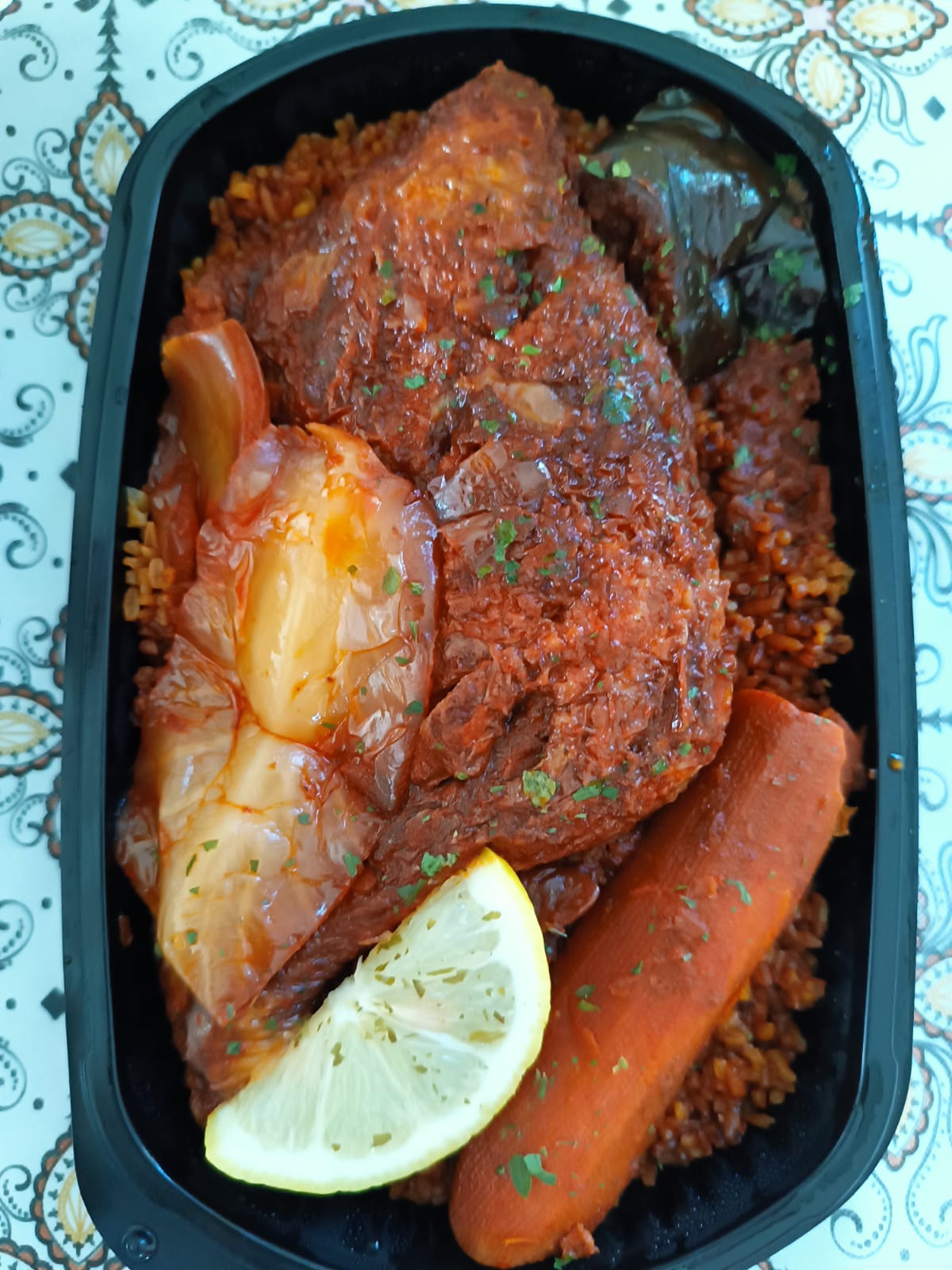 Livraison arrivée chaude. Plat très bon. Portion correcte. Mafé bœuf et agneau braisé avec riz rouge o top. Les viandes étaient tendres et sans gras. Merci encore pour les samosas. Bon courage et À bientôt.