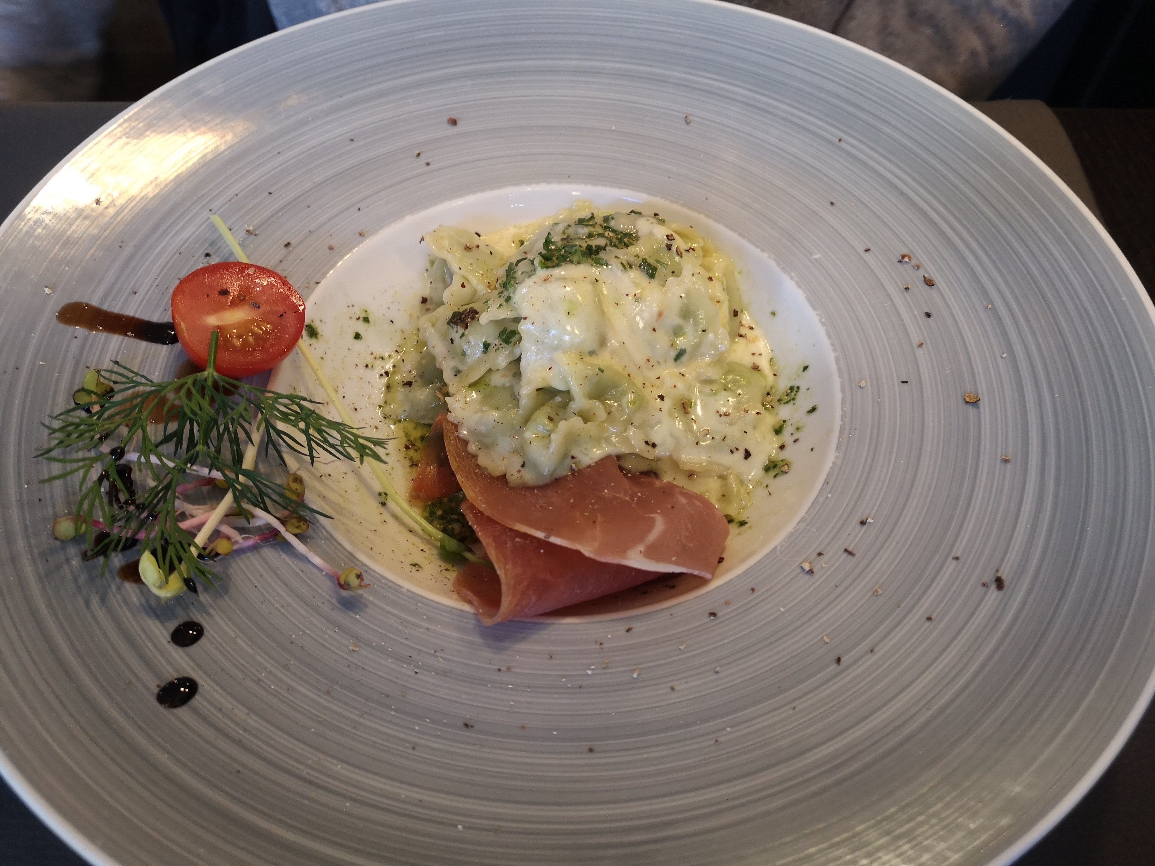 J'ai rarement mangé dans un restaurant aussi bon. L'entré était succulente. Le plat incroyable, a tel point que le désert semblait fade malgré sa grande qualité. L'ambiance était au calme et à la tranquillité et bien que le restaurant soit plein lors de mon passage, il n'y avait pas une once de brouhaha. Le service était de qualité et le personnel très agréable avec la pointe d'humour qui fait plaisir. L'entrée était composée de ravioles d'un goût et d'une qualité exemplaire. La viande de mon plat était parfaitement cuite et a animée mes papilles de la meilleure des manières. Je conseille très fortement ce restaurant. Le prix vaut largement ce que l'on y mange et le moment que vous y passerez sera sans aucun doute très agréable au point même de rester dans vos mémoires.