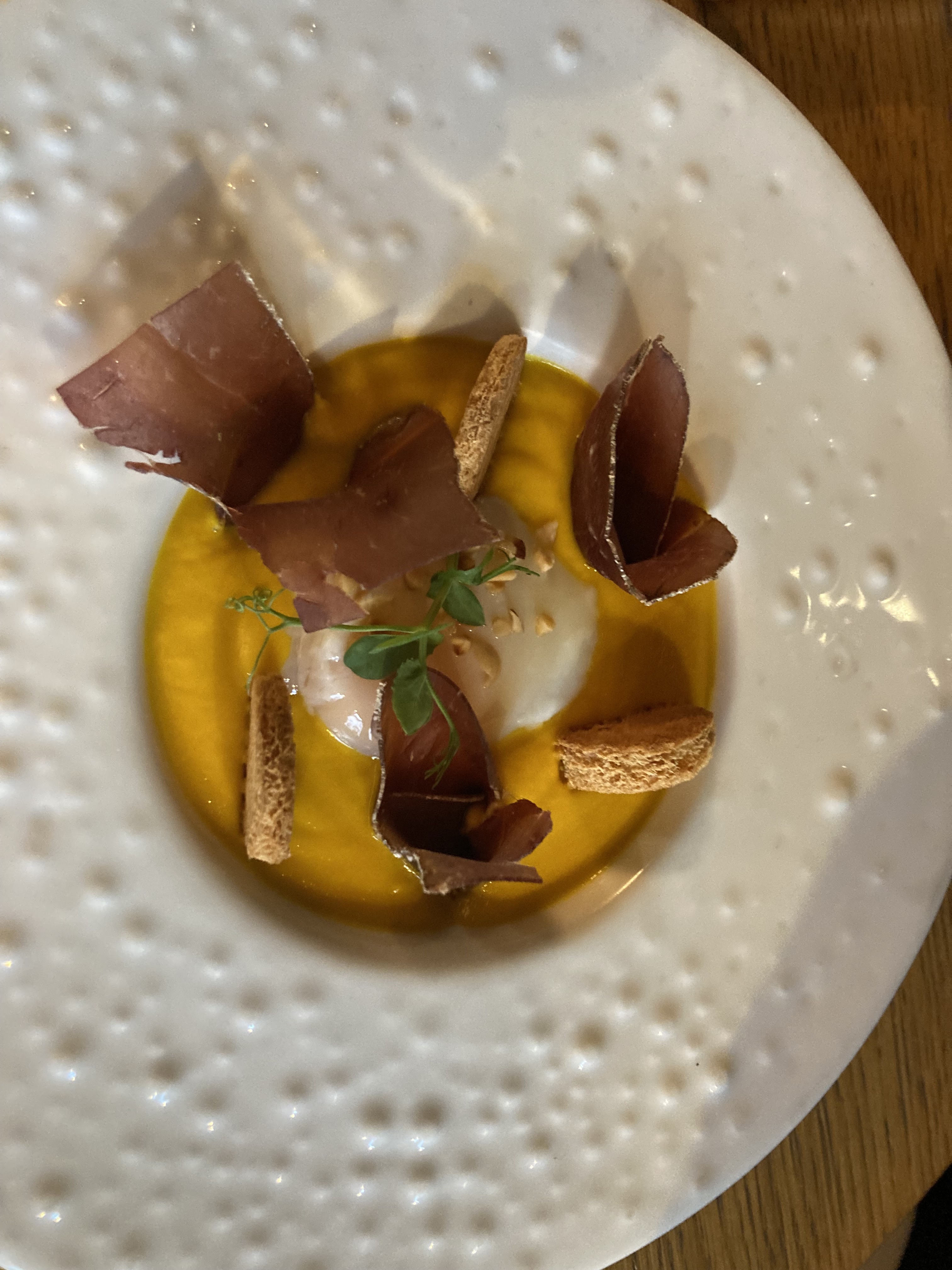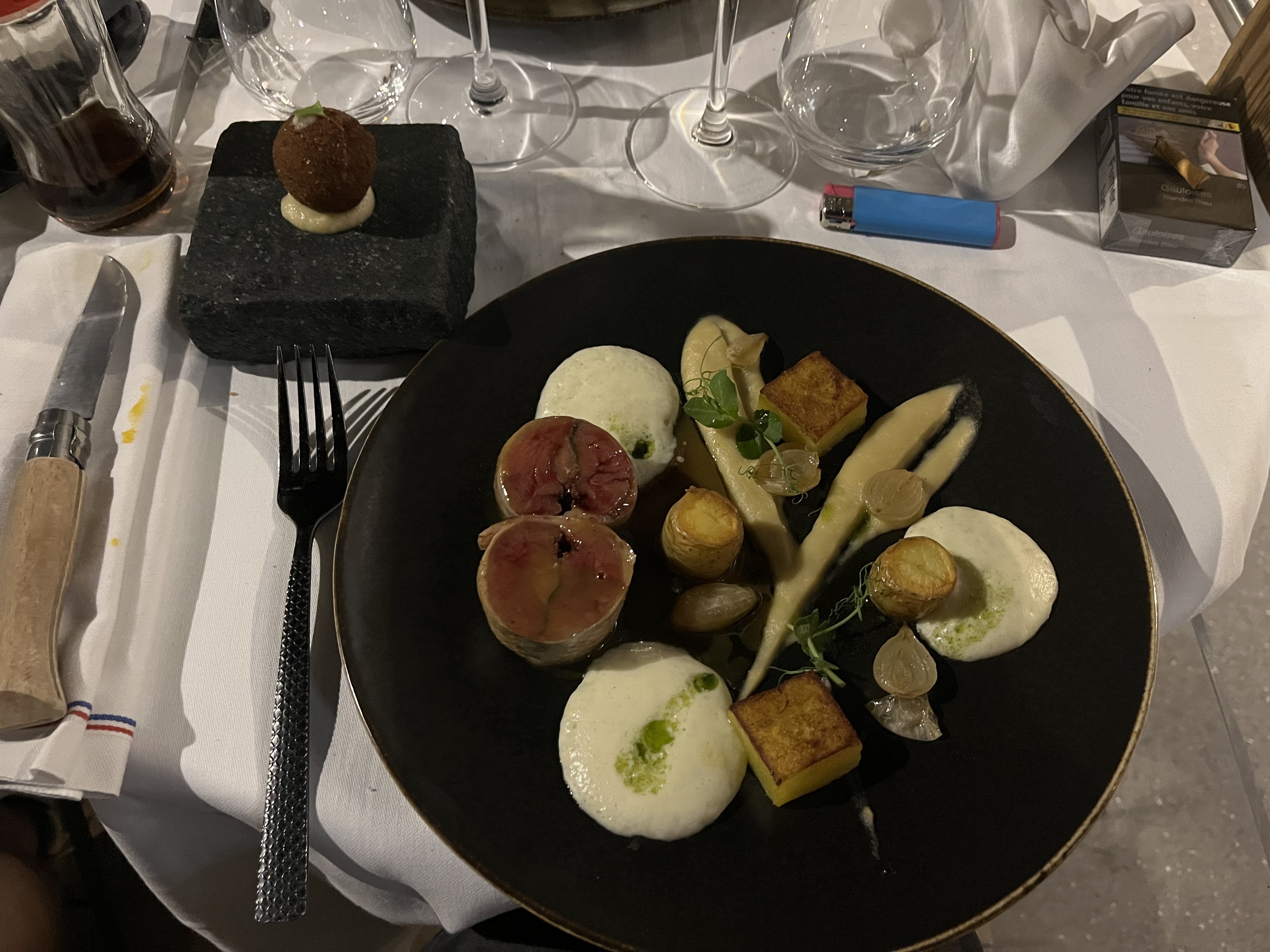 Dans l'ensemble c'est bien, mais pour le prix quelques petits efforts en plus serait pas mal, du genre grignotage à l'apéro, thé/café servis à bonne température avec chocolat sucre etc, et même si gastronomique un peu plus de quantité serait la bienvenue. Certains accompagnements manquaient de saveur et d'assaisonnement. Le pigeonneau était très tendre bonne cuisson c'était très bon et l'accueil agréable 👍🏼
