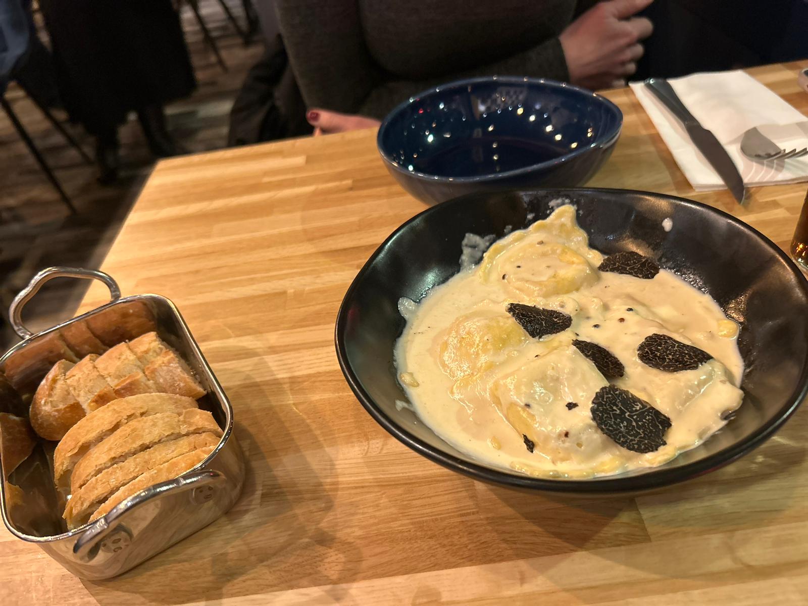 Endroit charmant et confortable. J'aime tout là-bas 💛 La nourriture (antipasti au fromage et à la viande et raviolis à la truffe) était incroyable et extrêmement délicieuse ! C'était bon aussi bien avec de la bière (mon ami en a commandé une française) qu'avec du vin blanc (j'ai choisi un Chablis, au verre). De plus, j'ai aimé l'atmosphère : la bonne musique et le rythme lent de cet endroit m'ont détendu après une longue journée. Pas de précipitation, profite de ce moment. Merci pour cette super expérience 💛🙏🏼