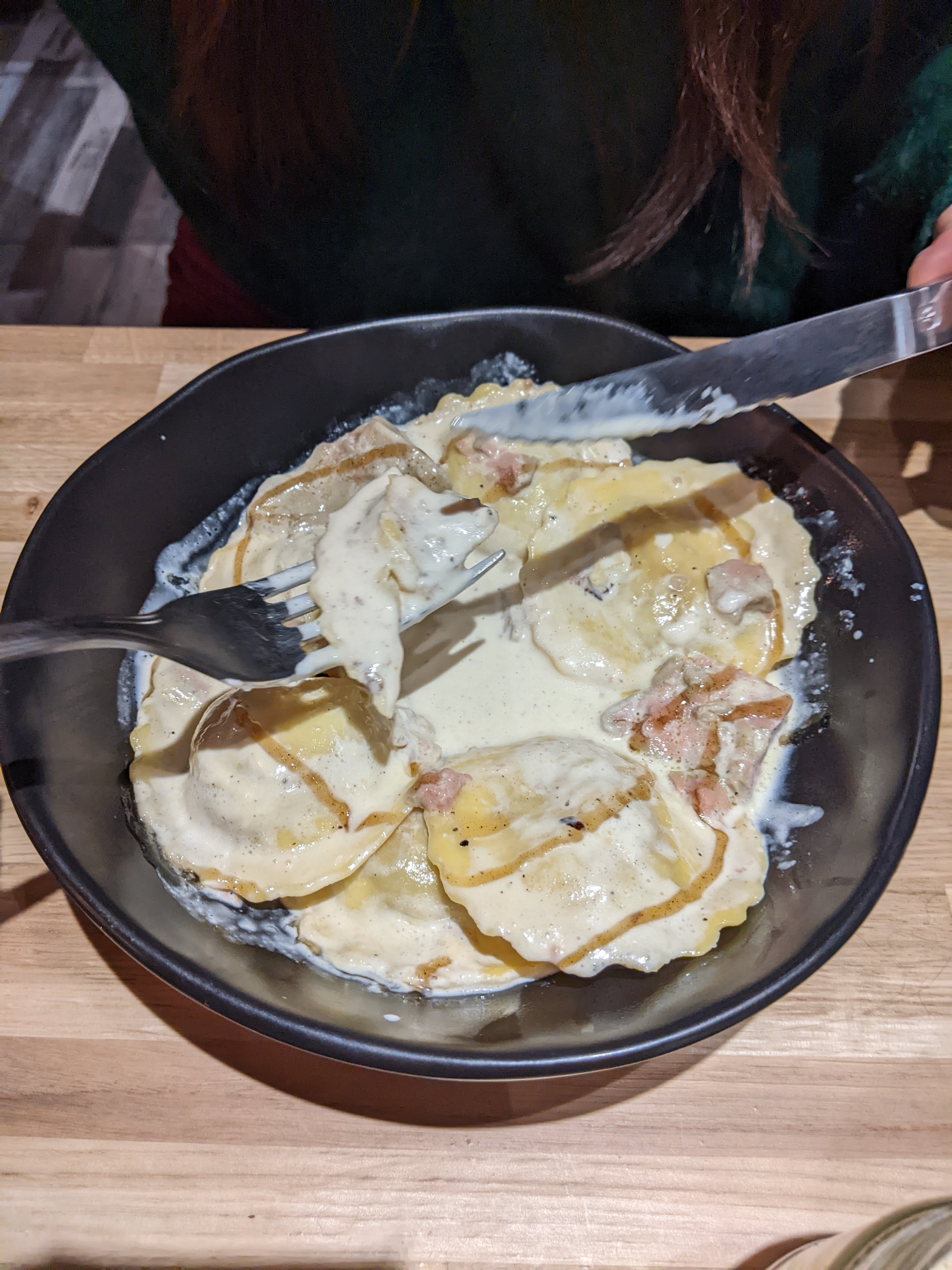Burger étonnant au foie gras et raviolis à la truffe. Je le recommanderais certainement!