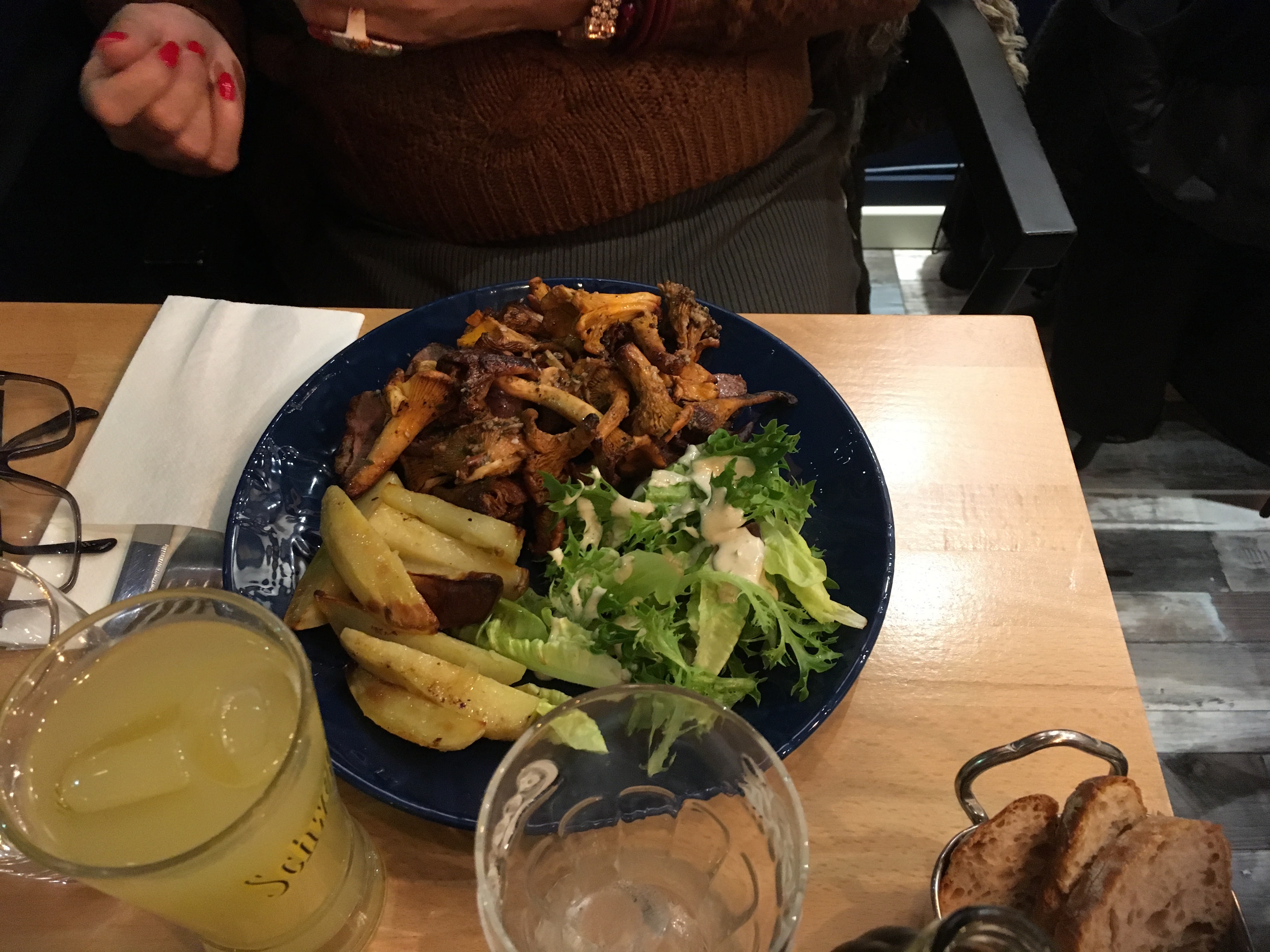 Quel délice ces assiettes avec des coquilles st Jacques et de belles girolles françaises , le burger surprise maison avec un foie gras délicieux . Un vrai régal un samedi d’automne .