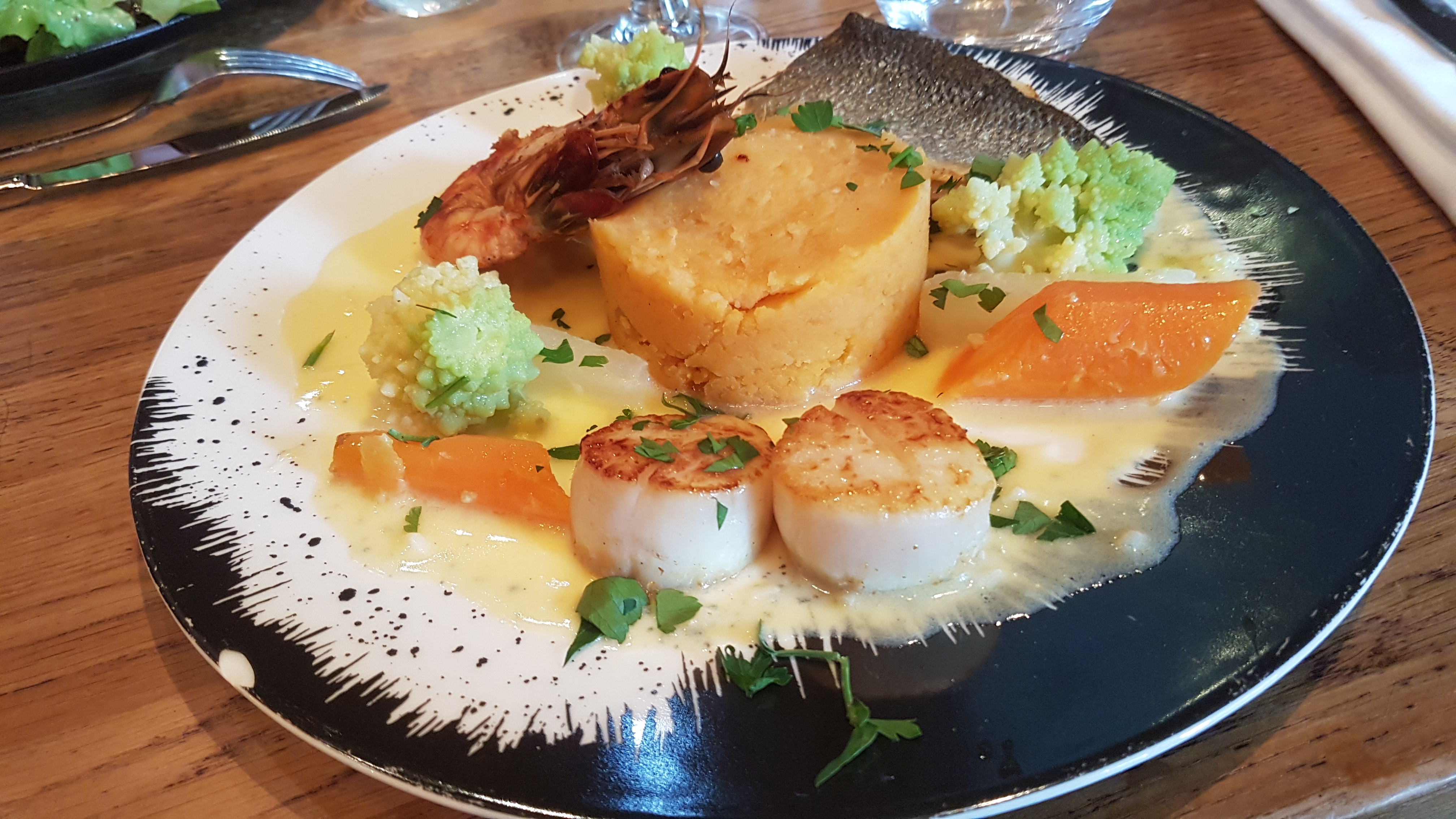 Très déçu ! Tout d’abord on n’arrive avec un peu d’avance on s’installe pour prendre un verre au bar en attendant que notre réservation soit prête on avait un peu d’avance. On s’aperçoit qu’on nous oublis, on doit réclamer notre table une fois installé à l’étage, la table n’est pas prête (plusieurs table étaient vides ) on a du attendre debout qu’on nous nettoie et dresse la table! Enfin on nous installe mais on ne nous donne pas de carte , la table trempée, on attend un moment et on fini par se lever pour réclamer une carte. Nous avons pris la lotte qui n’était pas cuite, froide et pas bien assaisonnée avec beaucoup d’eau. J’ai du faire repartir le plat en cuisson car la lotte était toujours aussi peu goûteuse les abricots blancs, explosés et tout sec dans l’assiette, (probablement la cuisson micro ondes), mais oui c’était chaud ! C’était censé être accompagné de légumes, mais ça n’était que des haricots blancs à peine cuit, rien d’autre bref très grande déception. 3 dames à côté de nous avaient pris la même chose et, elles nous confient être déçu aussi. Nous avons aussi attendu longtemps la carte des desserts que nous n’avons jamais eu, on a fini par rejoindre la caisse. Arrivée à la caisse ces dames passaient juste avant nous, la serveuse s’excuse et leur informe que les plats de lotte sont offert qu’ils ne comprennent pas c’est la première fois que ça leur arrive … On se dit que c’est cool qu’ils fassent ce geste et qu’ils se sont rendu compte qu’il y avait un soucis…Arrivé à notre tour la serveuse nous explique que leur poisson à elles était vraiment pas cuit et qu’on est pas concerné. Je ne comprends pas et lui dis que le miens non plus, et que j’ai du faire repartir mon assiette et que ce n’était pas très bon pas d’assaisonnement… On nous propose donc aucune remise, on est choqué car la table juste avant on leur fait des excuses et on leur offre leurs plats et tant mieux et, mon mari et moi étions juste derrière et donc avons entendu ce geste commercial… Pourtant il n’a pas été question de de prendre en compte notre ressentiment en ce qui nous a concerné…. Comme si on voulait profiter de la situation alors que ça n’allait vraiment pas… Bref vraiment déçu, j’avais une belle image de cette établissement.