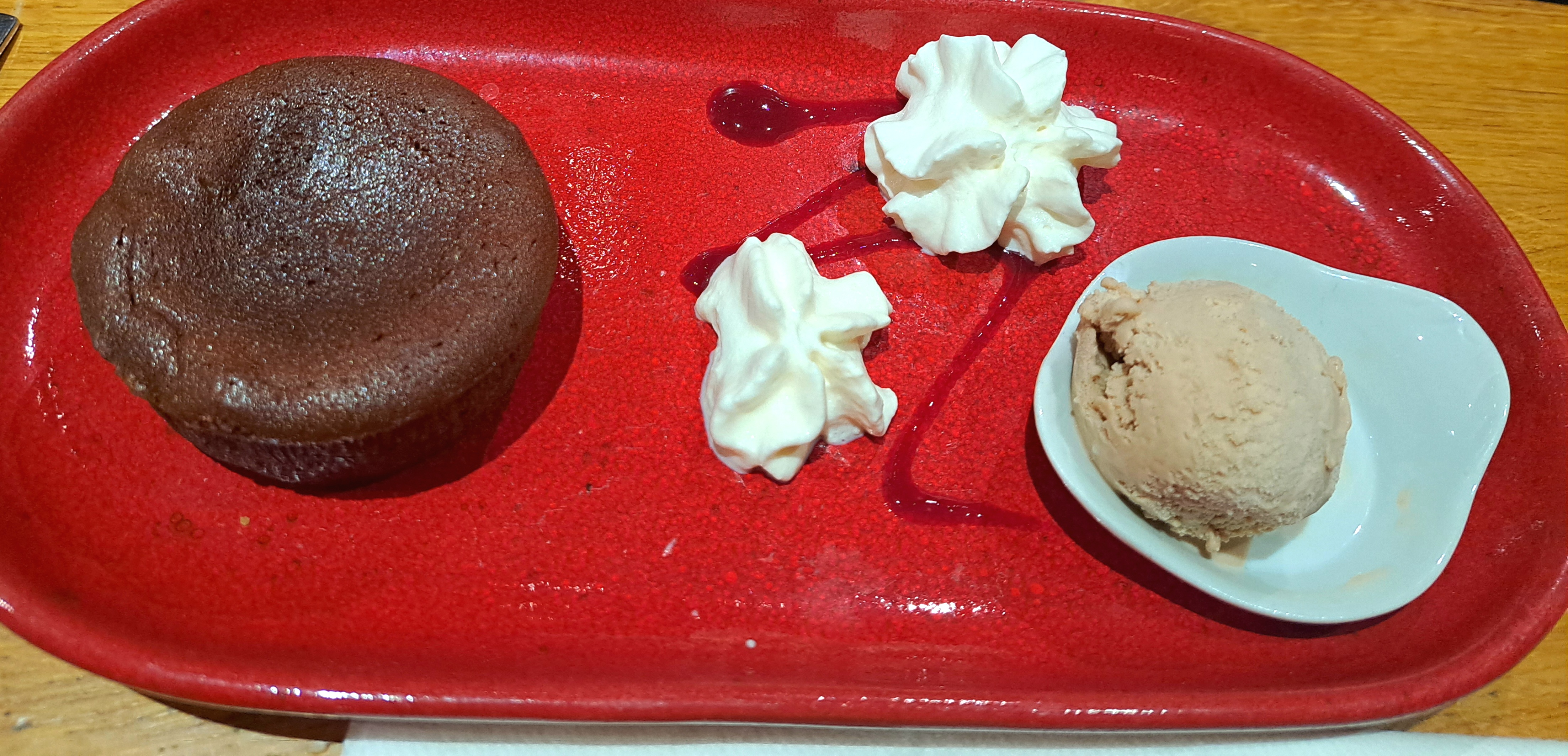 Nous avons pris le plat du jour. oeufs cocotte chedar - Joue de bœuf purée - moelleux chocolat (pas très moelleux et bon mais pas ouah) de toute façon le dessert était de trop. Nous n'avons pas réussi à le finir car nous étions repu. Simple mais très bon. Merci 😊