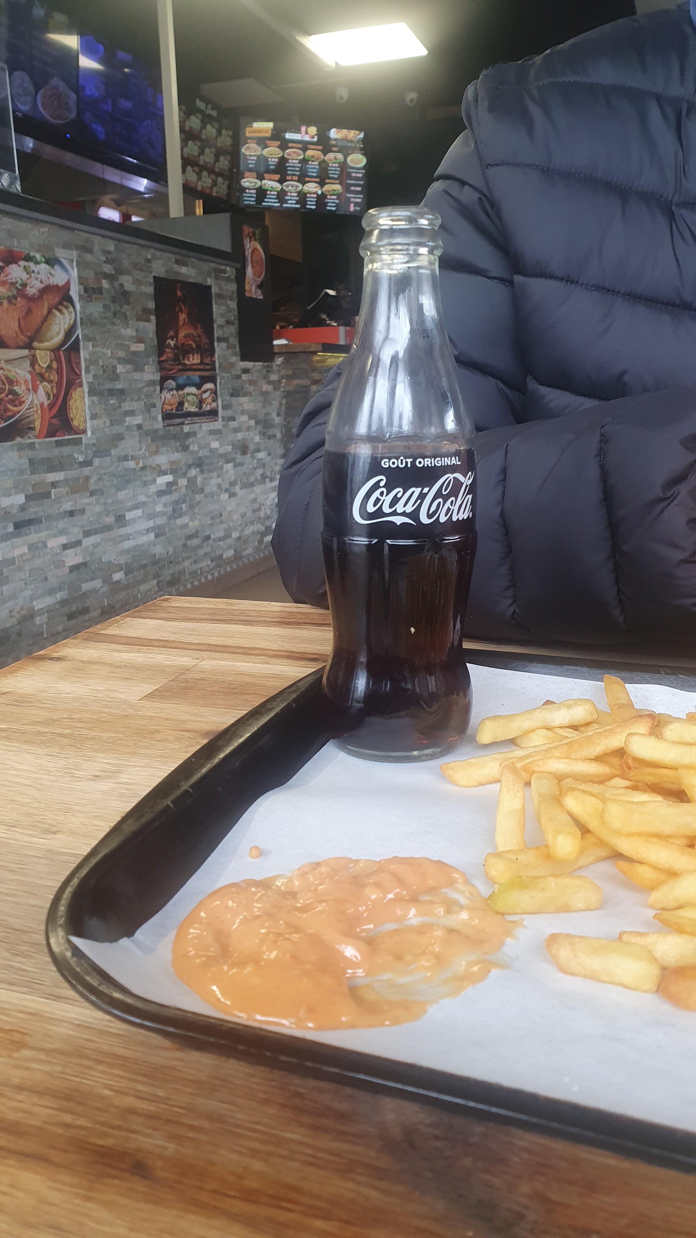 Kebab industriel congelé Frites passable Un peu cher pour une qualité médiocre Ne recommande pas
