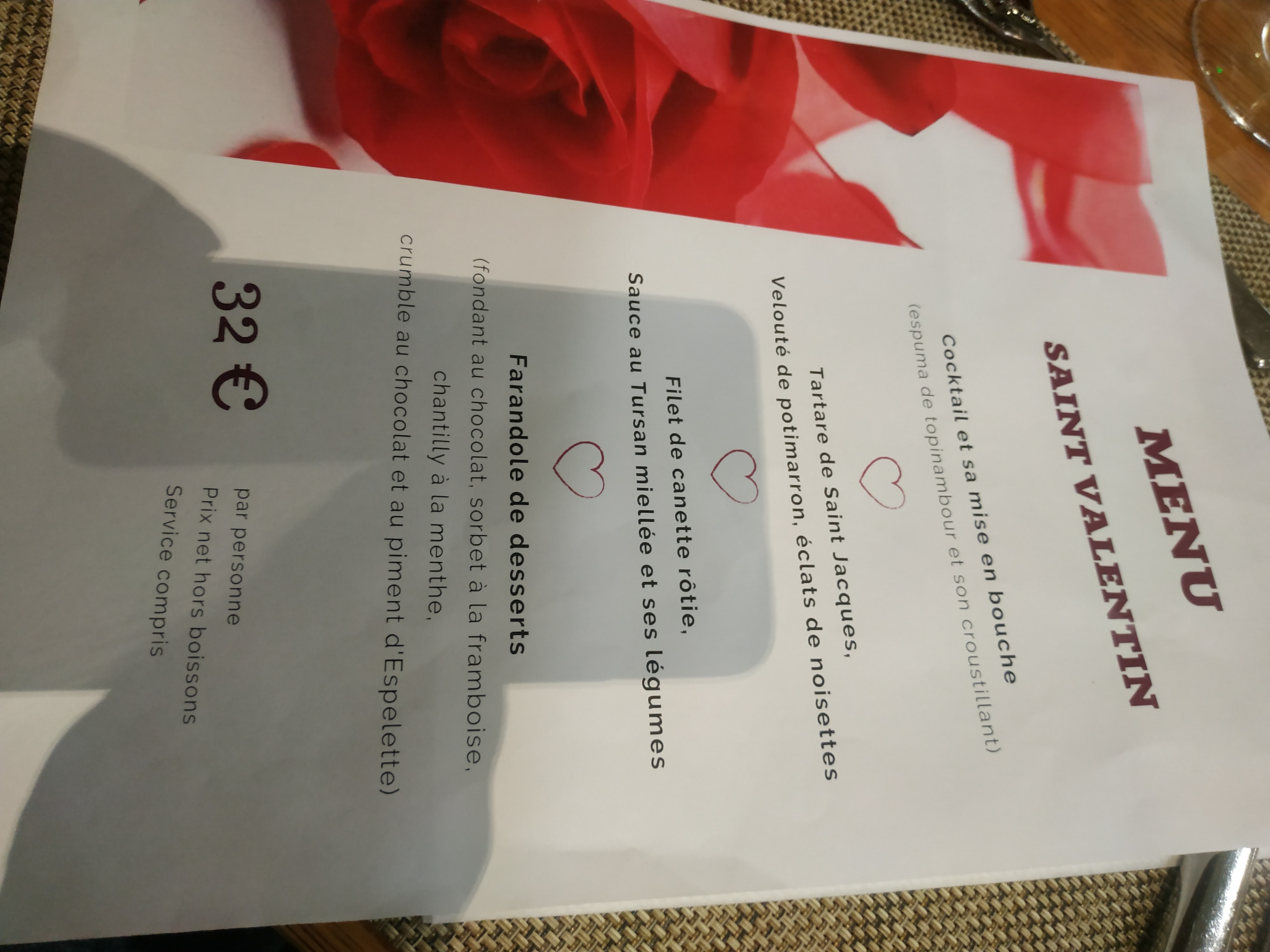 Prix du menu correct. Accueil et service de grande qualité, personnel souriant et aimable. Plats de très bonnes qualités gustatives, très bonne présentation. Je recommande vivement.