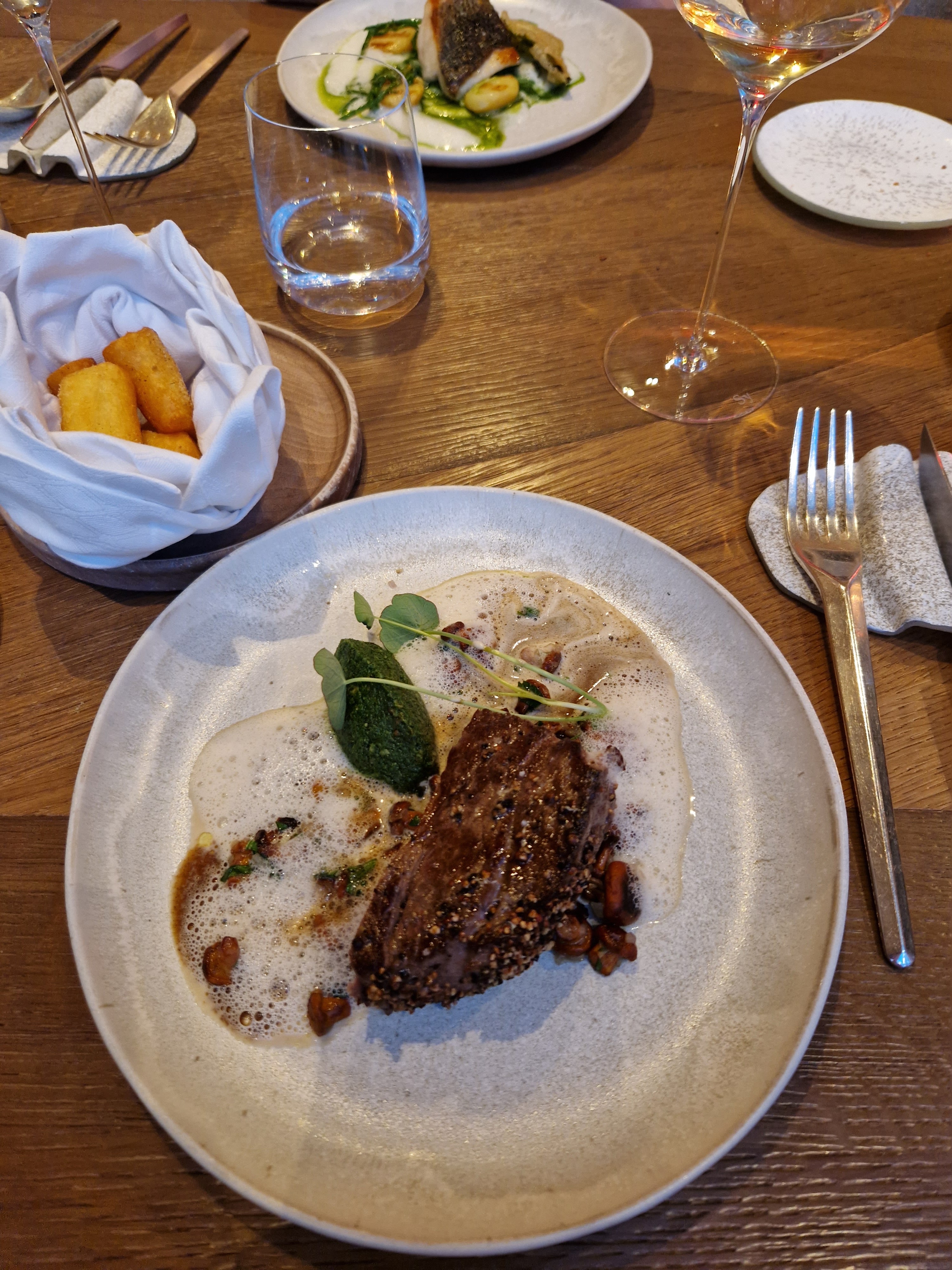 Tout ce que l'on pourrait attendre d'un restaurant étoilé. Déco d'un design très original et chaleureux. Personnel très aimable et aux petits soins. Et bien sûr une cuisine exquise que vous soyez viande ou poisson. Ah oui, le plateau des desserts est délicieux et copieux (petits estomacs s'abstenir).