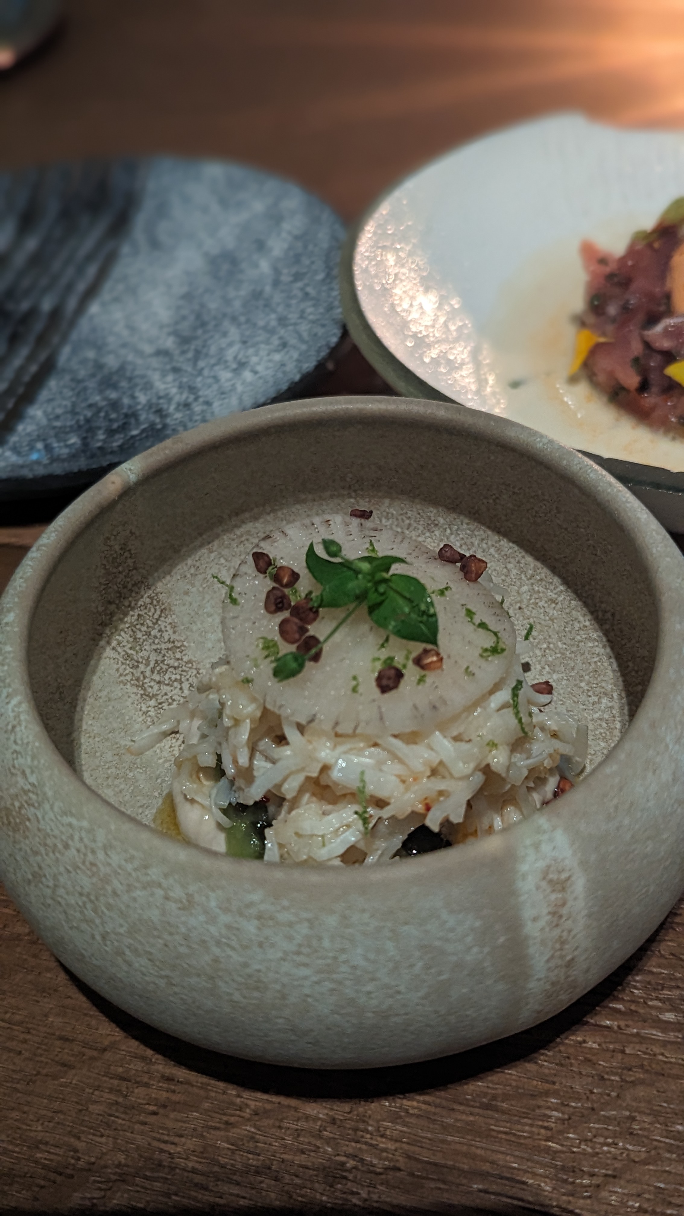 Première fois dans ce restaurant à la décoration zen et chaleureuse. Nous n'avons pris que des entrées car il est possible de les prendre toutes, façon dégustation. C'est un bonne idée pour découvrir la cuisine du chef Frédéric Vardon et c'était parfait pour un déjeuner. Hâte d'y revenir aux beaux jours pour profiter de la terrasse et de cette cuisine gourmande et goûteuse.