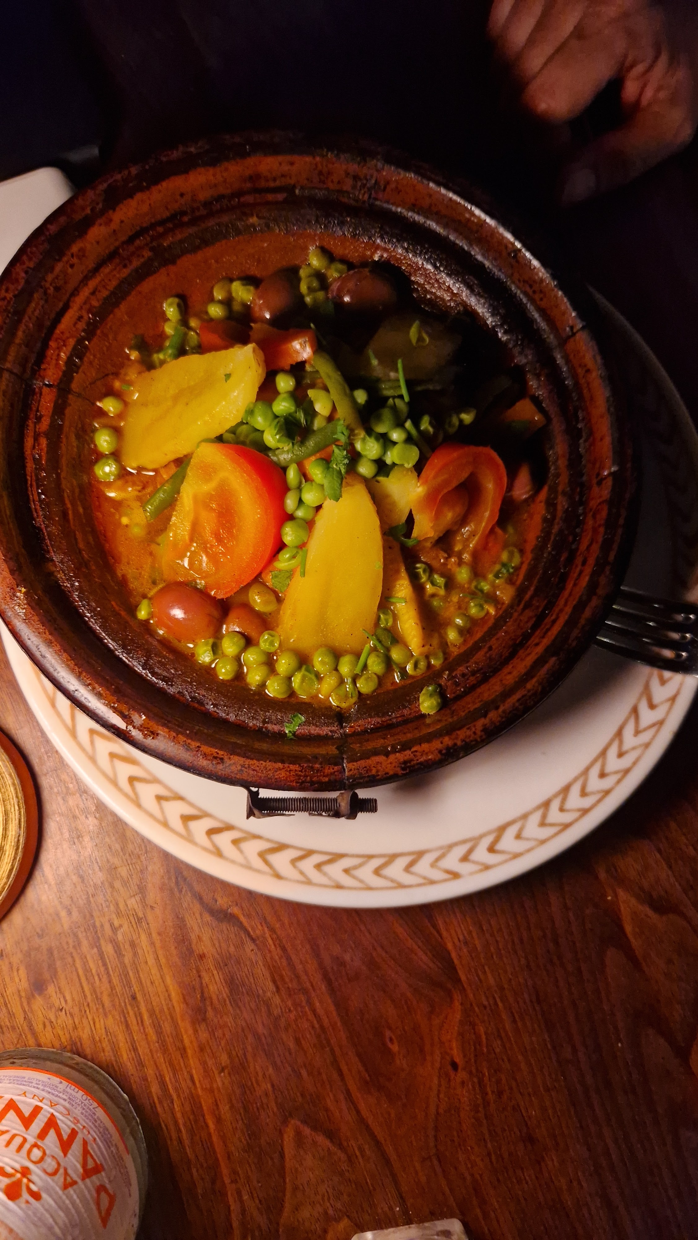 Nous avions l'impression d'être transportés au Maroc. Personnel sympathique, excellent service, nourriture exquise. Je ne peux réserver ici qu'une semaine à l'avance, donc bonne chance car très populaire. Gérant très agréable et s'engage avec les clients qu'il connaît bien. Entrée de sardine et houmous crémeux suivi d'un tajine d'agneau, de brochettes d'agneau et de Cous Cous, superbe et mémorable. Merci xx