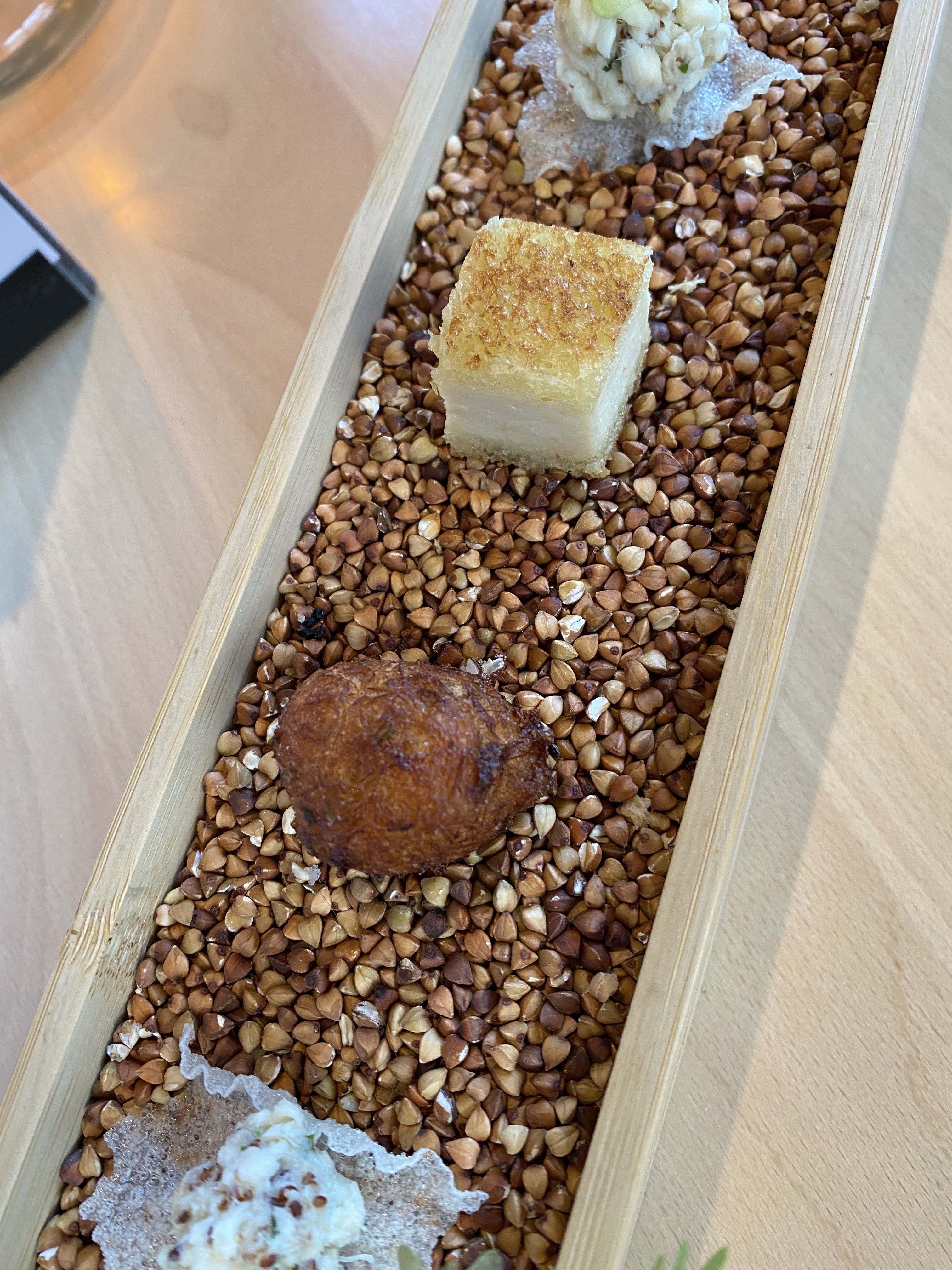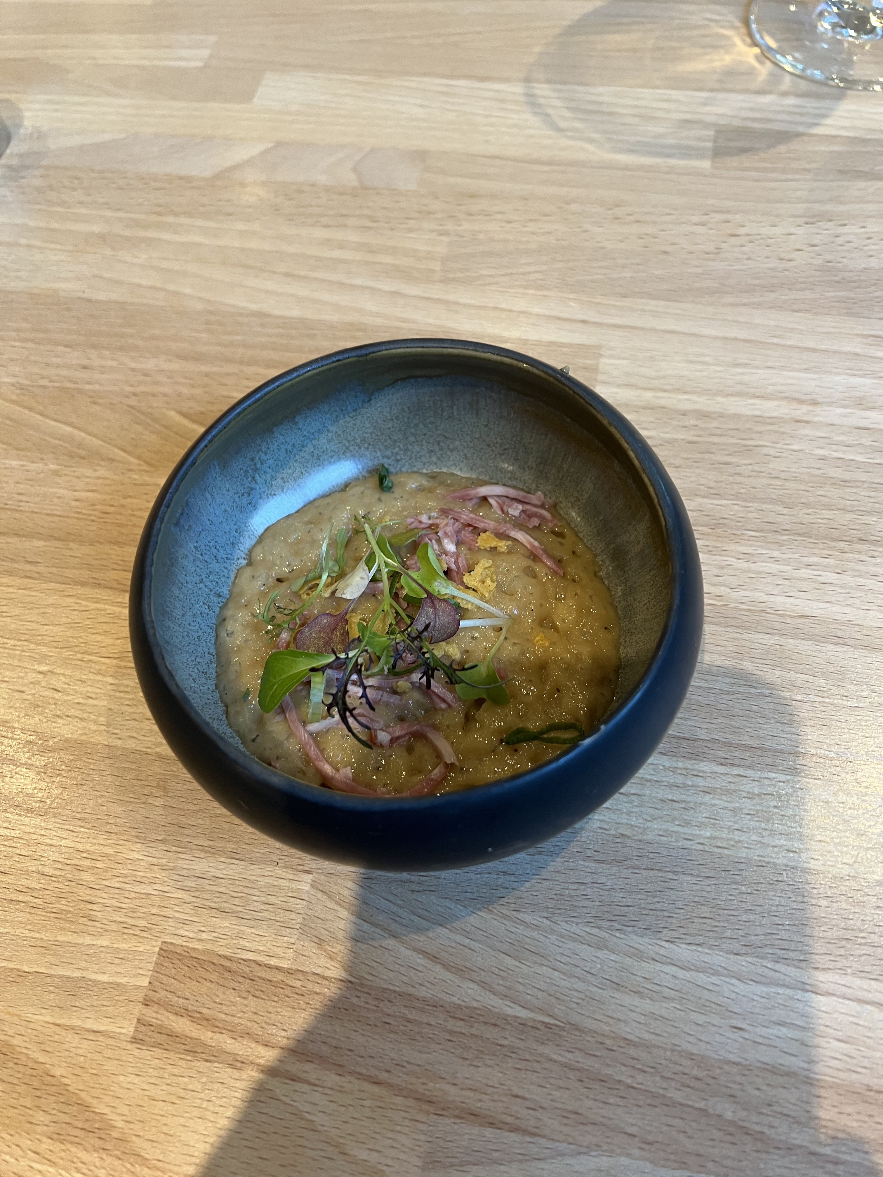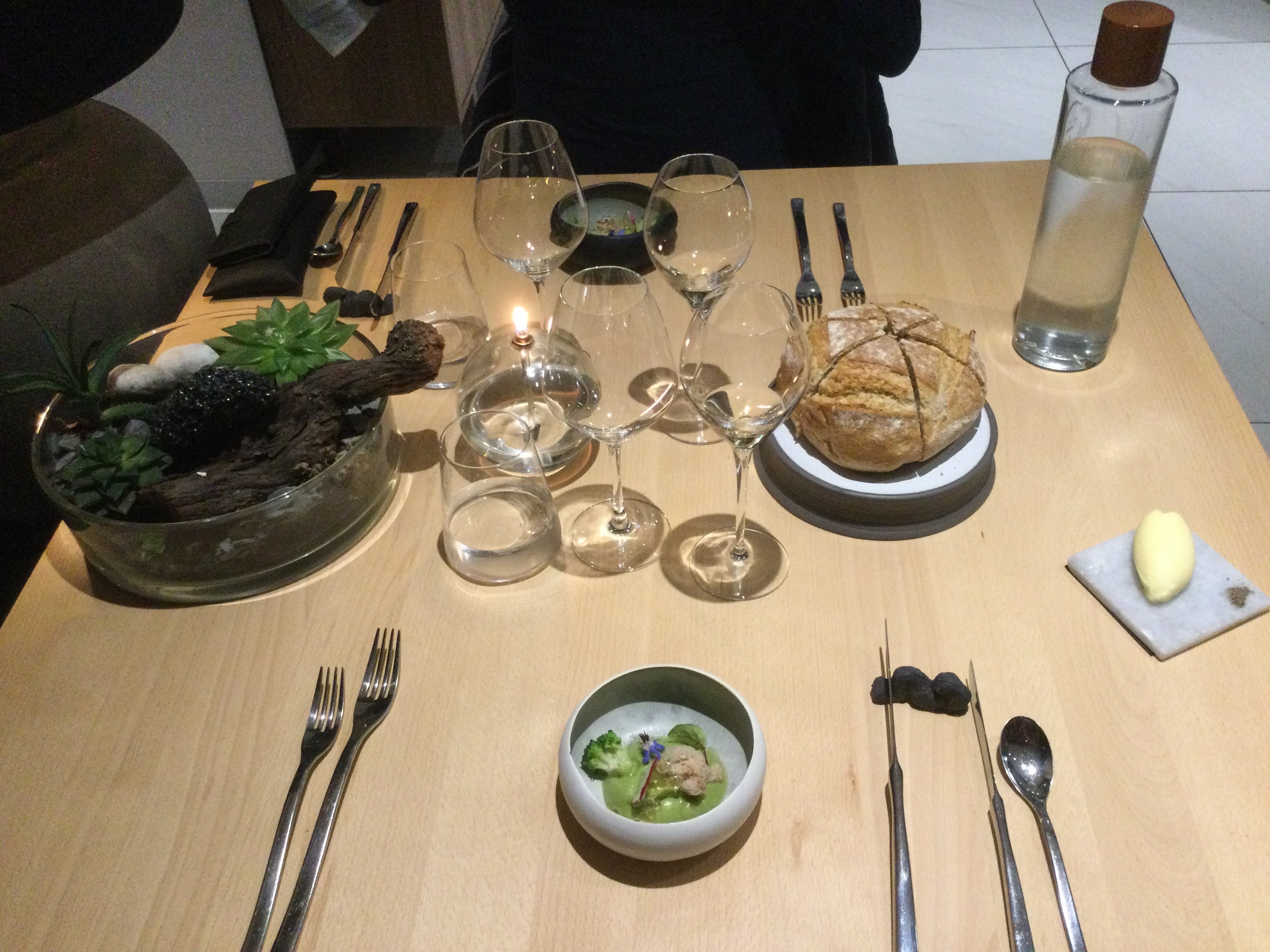 Nos attentes étaient trop élevées et si le consommé de courgettes était très bon, le reste était assez décevant. Nous avons pris le repas de six plats : les deux plats de poisson n'ont pas survécu au gel, étant fades et farineux, et le bœuf était simplement une bataille à couper et à mâcher. Le plat de fromage banal (avec une tranche de pomme) ne méritait pas une photo et n'aurait pas dû être servi si le 428 cherche à être reconnu comme étant de qualité. Nous faisons généralement confiance aux restaurants classés Michelin, mais celui-ci est un échec.