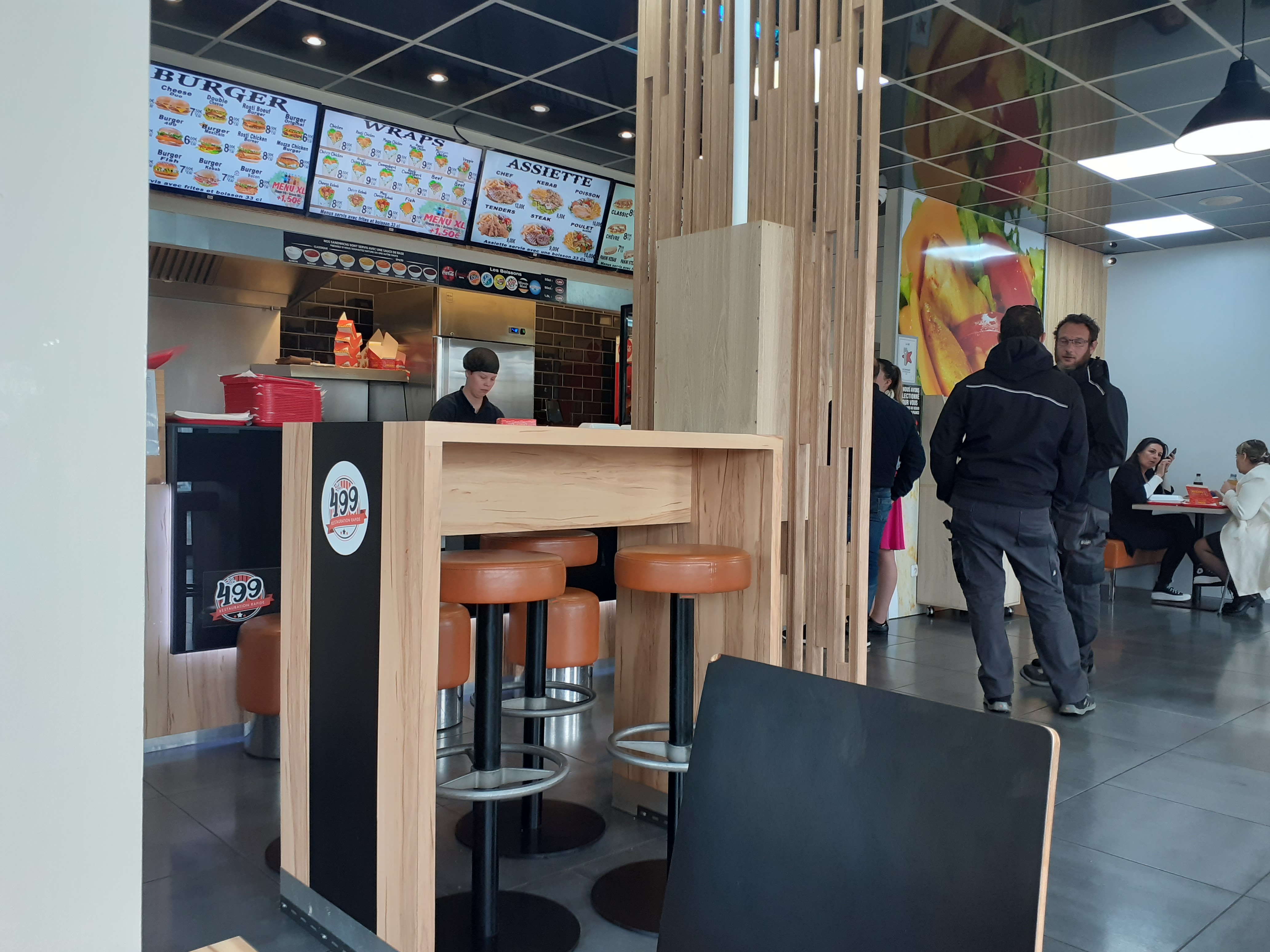J'ai mangé un wrap kebab dans ce Fast Food a proximité du CH d'Angoulême et je l'ai trouvé très bon. Le sandwich était bien garni en viande, légumes et fromage. Accompagné de frites (surgelées mais croustillantes et plutôt bonnes) et d'une boisson le menu était a 7 euros. L'endroit est propre et l'on peut y manger a l'intérieur ou en terrasse. La carte est plutôt diversifiée. Le service est rapide et plutôt agréable. Le 499 est donc plutôt un bon Fast good sur le secteur.