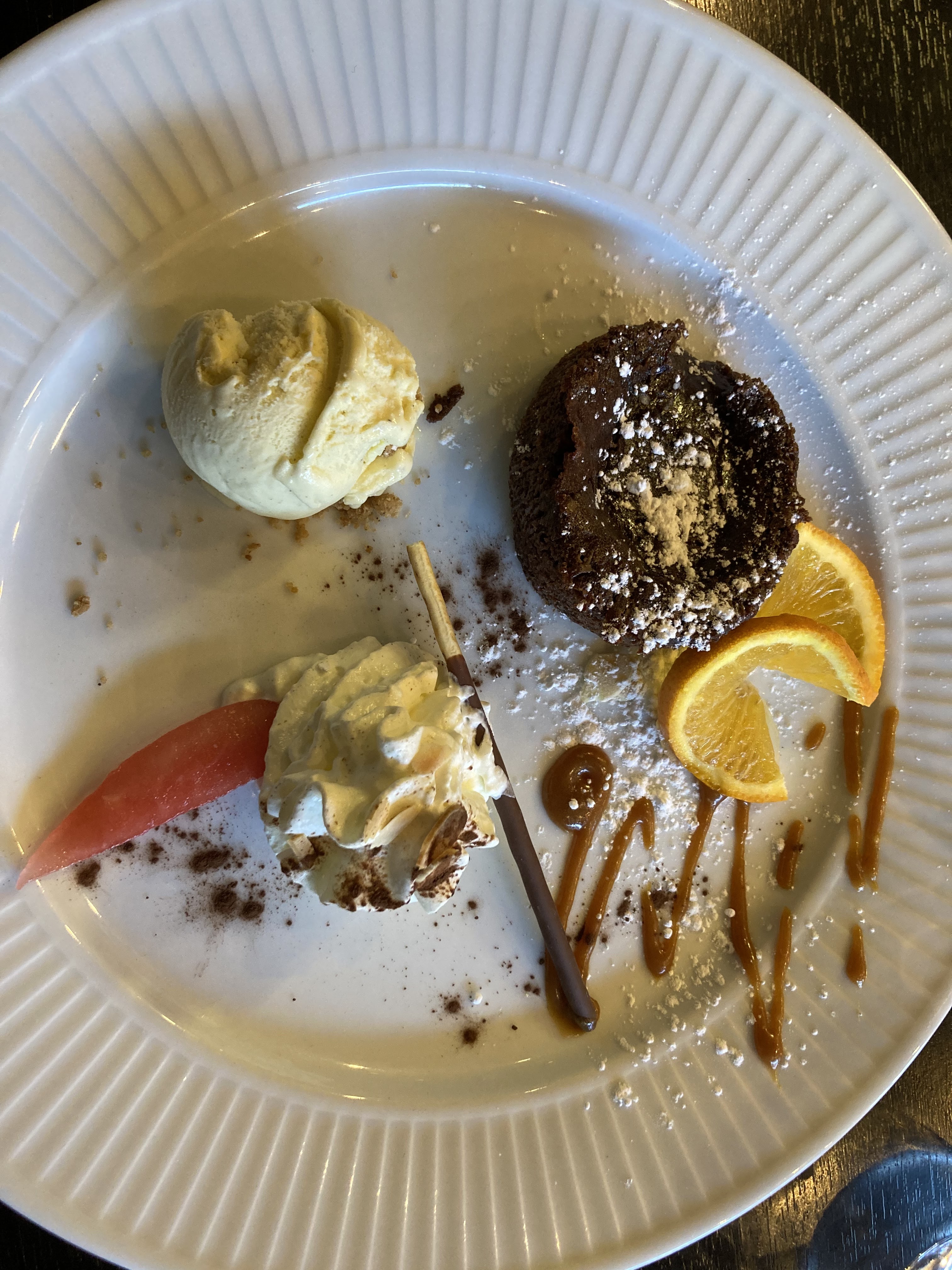 Excellent. Service de qualité. Tarif correct. Menu enfant à 9€50 plusieurs choix possible plats et desserts. En photo desserts des menus enfants glace + gauffre/ moelleux au chocolat coeur fondant. Originalité de la présentation du plat qui est d'ailleurs copieux.