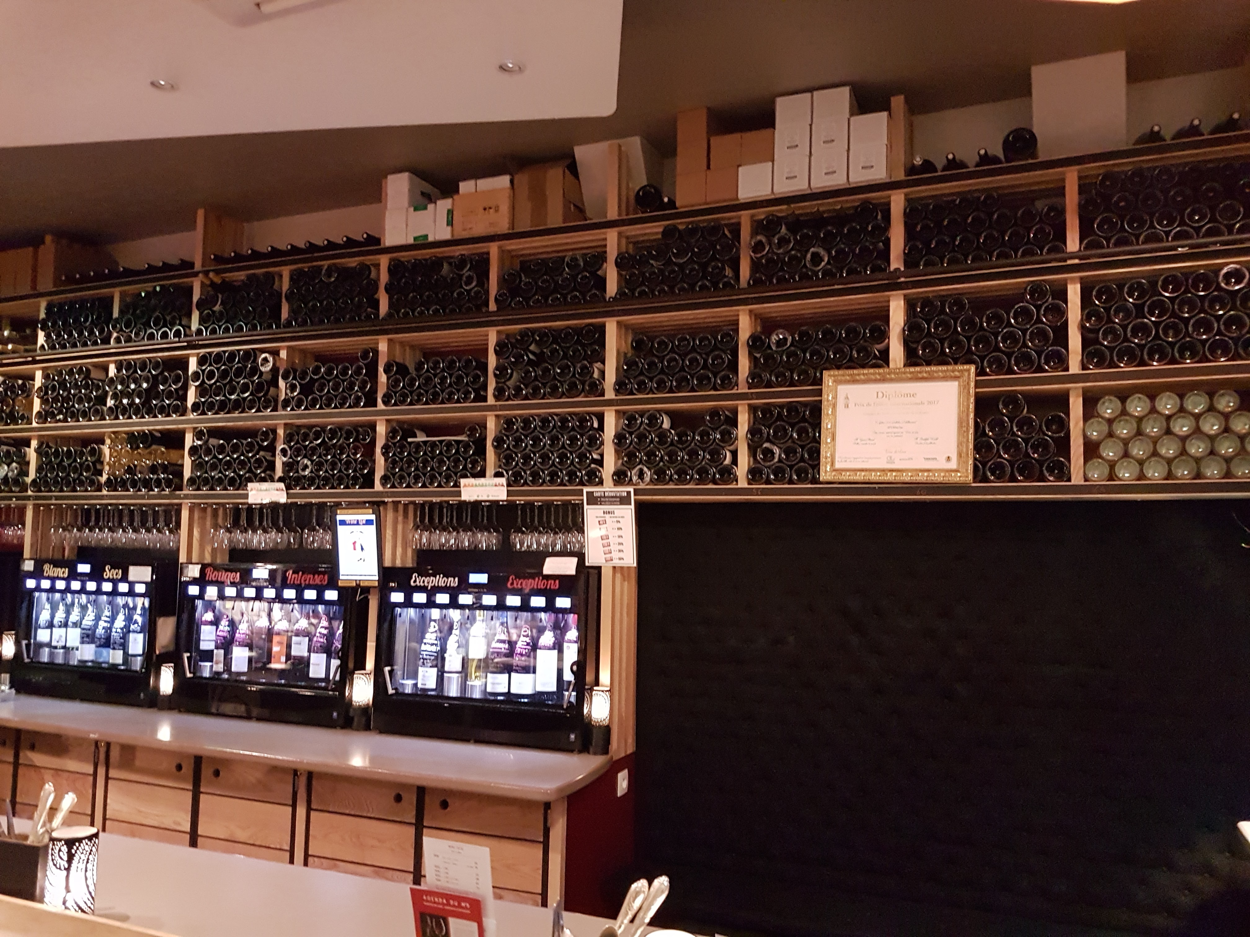 Le concept est franchement sympa. Cela donne la possibilité de goûter un très grand nombre de vins allant du vin à usage quotidien au vin d'exception. Attention cependant à la carte qui se vide rapidement 😉