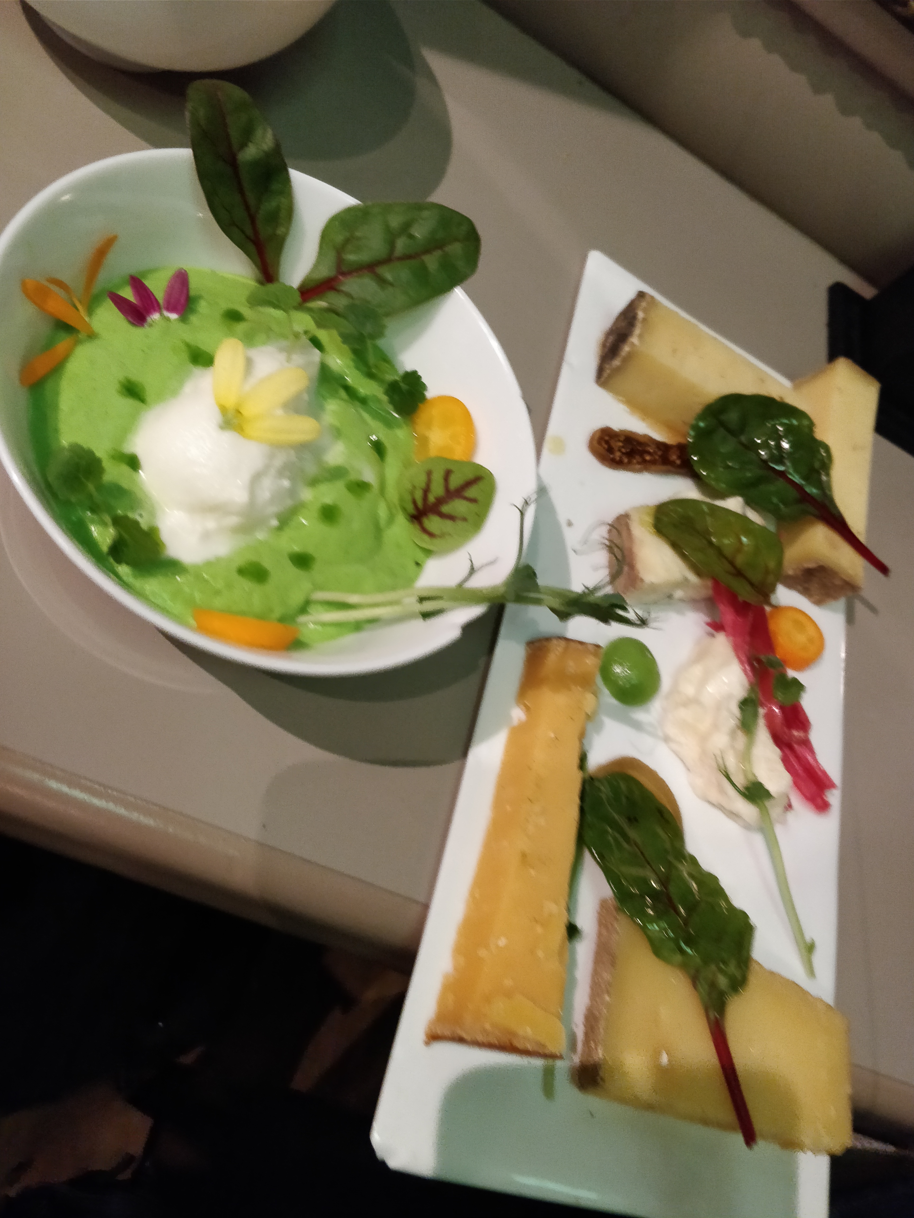 Menu terre mer. Menu légumes. Une tuerie ! C’était exquis. Don’t l’œuf parfait à la truffe. Tout était parfait avec des vins racontés avec passion par le sommelier