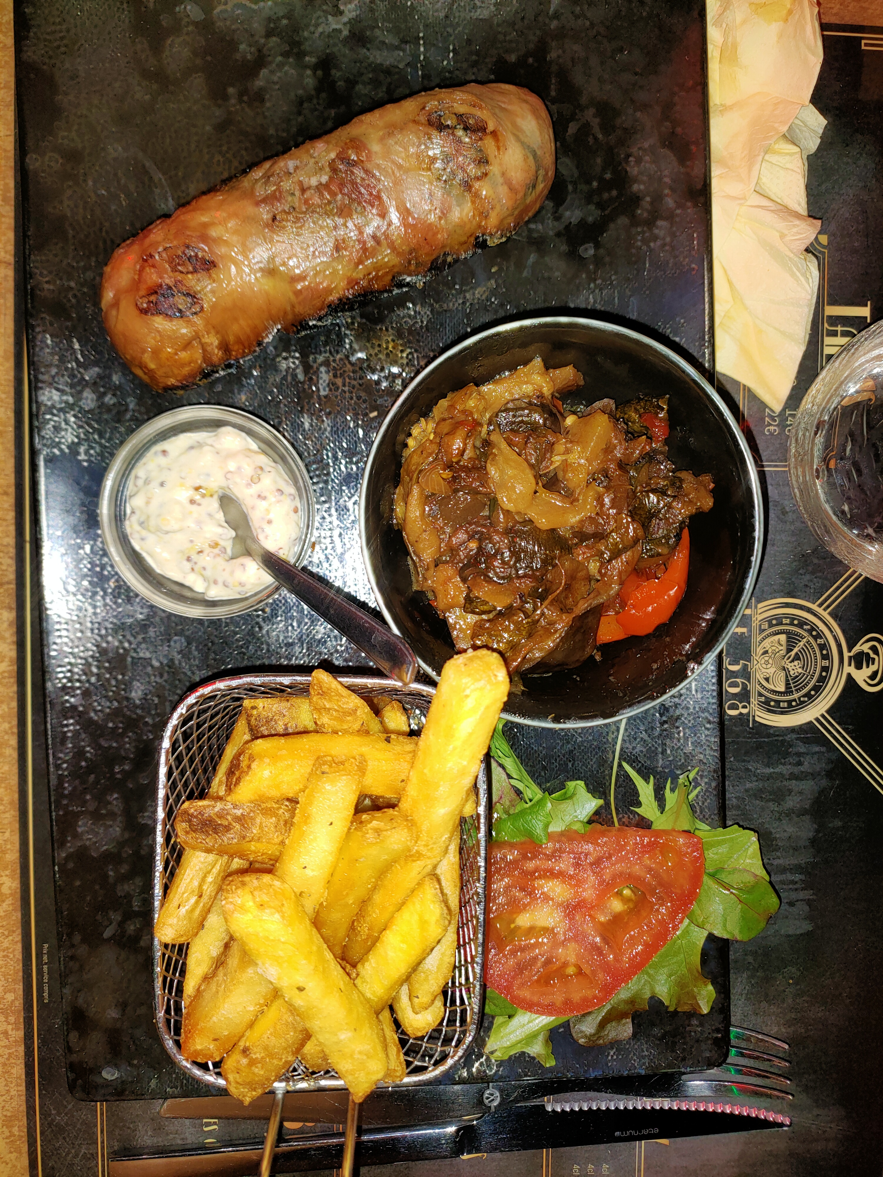 Des viandes excellentes,la ratatouille confite et des frites croustillantes et assaisonnées d’herbes de Provence au goût inimitable. Merci beaucoup à la serveuse pour sa gentillesse et son sourire. Seul bémol indépendant de votre volonté,un monsieur en conversation téléphonique dont il a fait bénéficier toute la salle avec beaucoup de sans gêne et une voix de stentor 🙄. Des Sanaryens de passage 👍