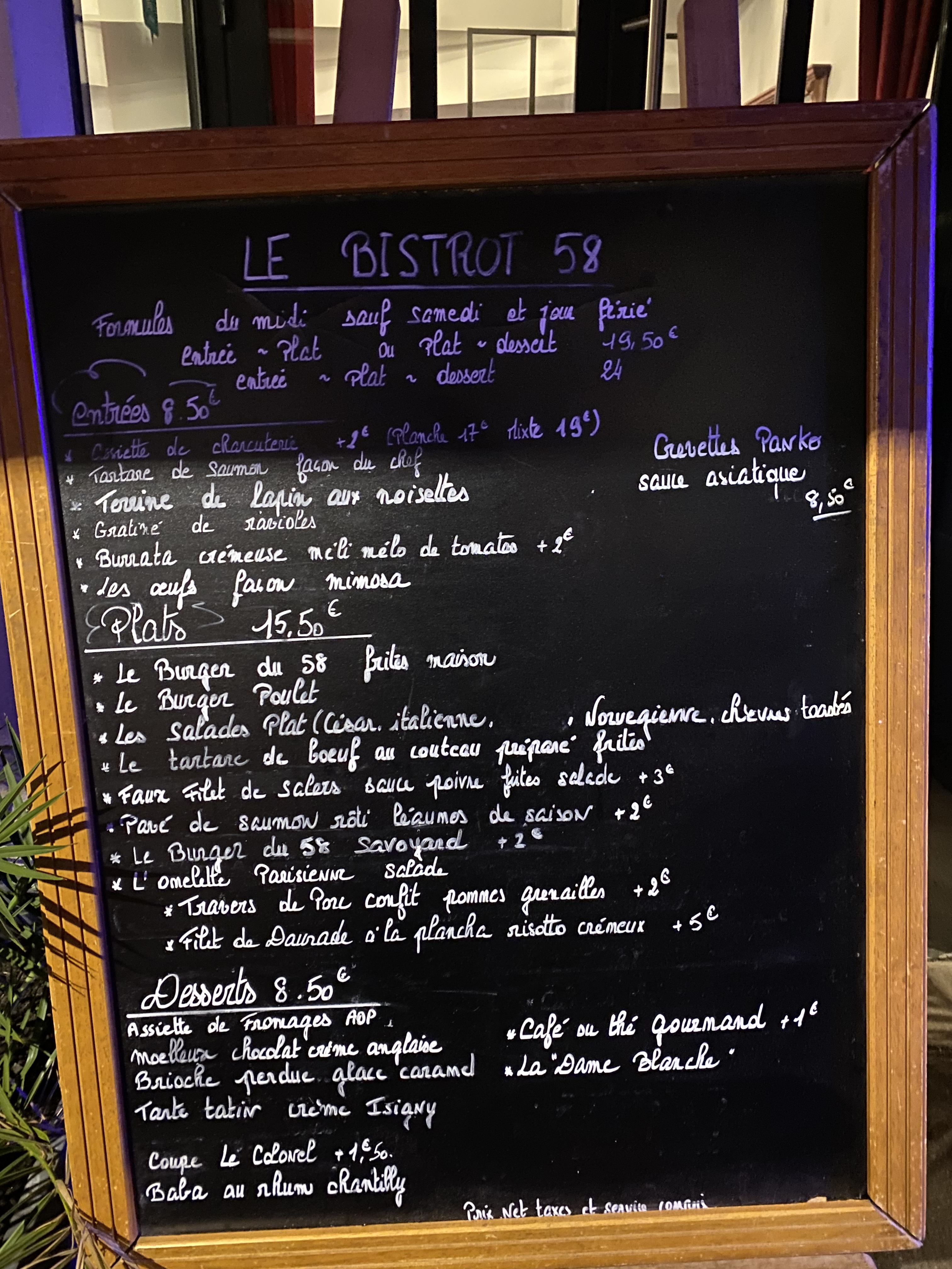 C’est ma 3ème « visite » au 58 et nous avons vraiment passé une très bonne soirée: repas délicieux (dos de cabillaud en croûte, mousseline de butternut et légumes fondants: fin et savoureux ) et accueil très chaleureux Je recommande vraiment ce bon bistronomique au Plessis… et mieux vaut réserver car les bonnes adresses sont victimes de leur succès 😉