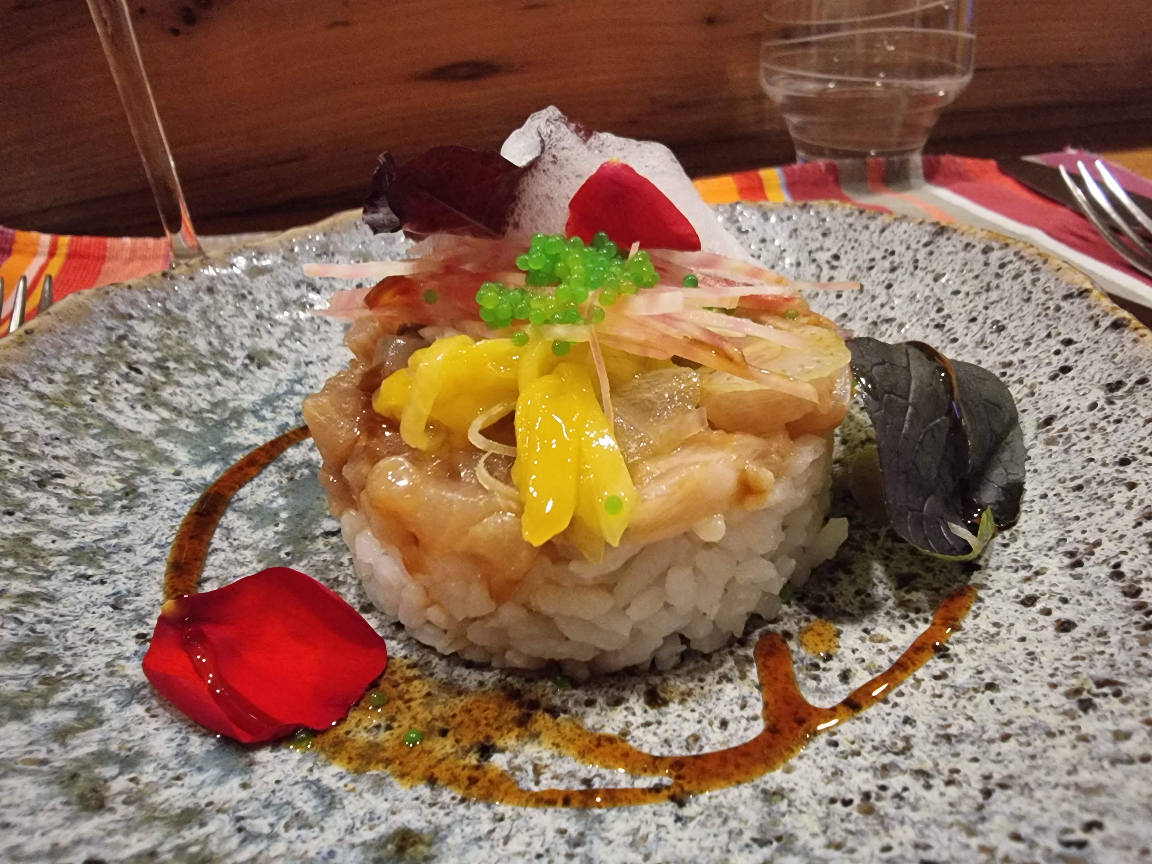Entre cuisine japonaise et Catalane. Magnifiques saveurs. Très bon.