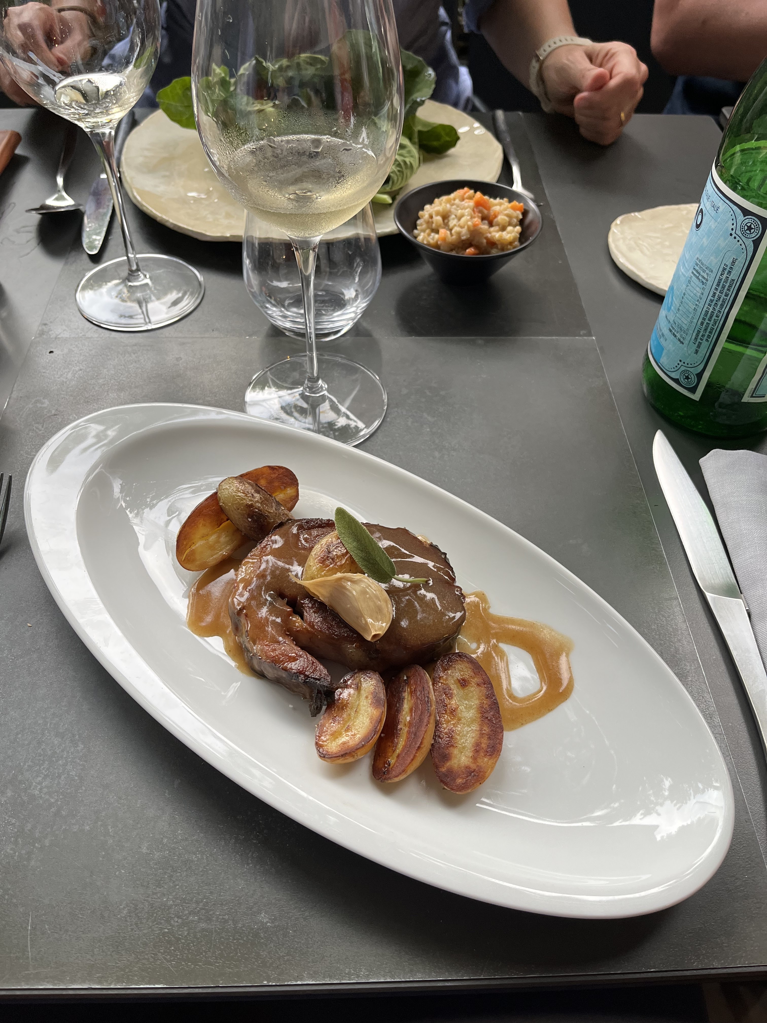 Service et accueil agréables. Les produits sont frais. Le cadre est chaleureux. Les assiettes sont pour moi trop chères par rapport à la quantité servie. Vu le prix, je m'attendais à avoir plus de 4 fourchettes de pâtes. Mon conchon accompagné de grenaille et ails en chemises... manquait d'ail en chemise 2 gousses c'est un peu juste, ou alors il faut ajouter un peu de légumes en plus. Par ailleurs, je l'ai trouvé dur et avec trop de nerfs et de gras. L'étape fromage ET dessert est pour moi indispensable. Bref, bon restaurant mais pas à la hauteur du tarif. Merci tout de même pour la soirée agréable.