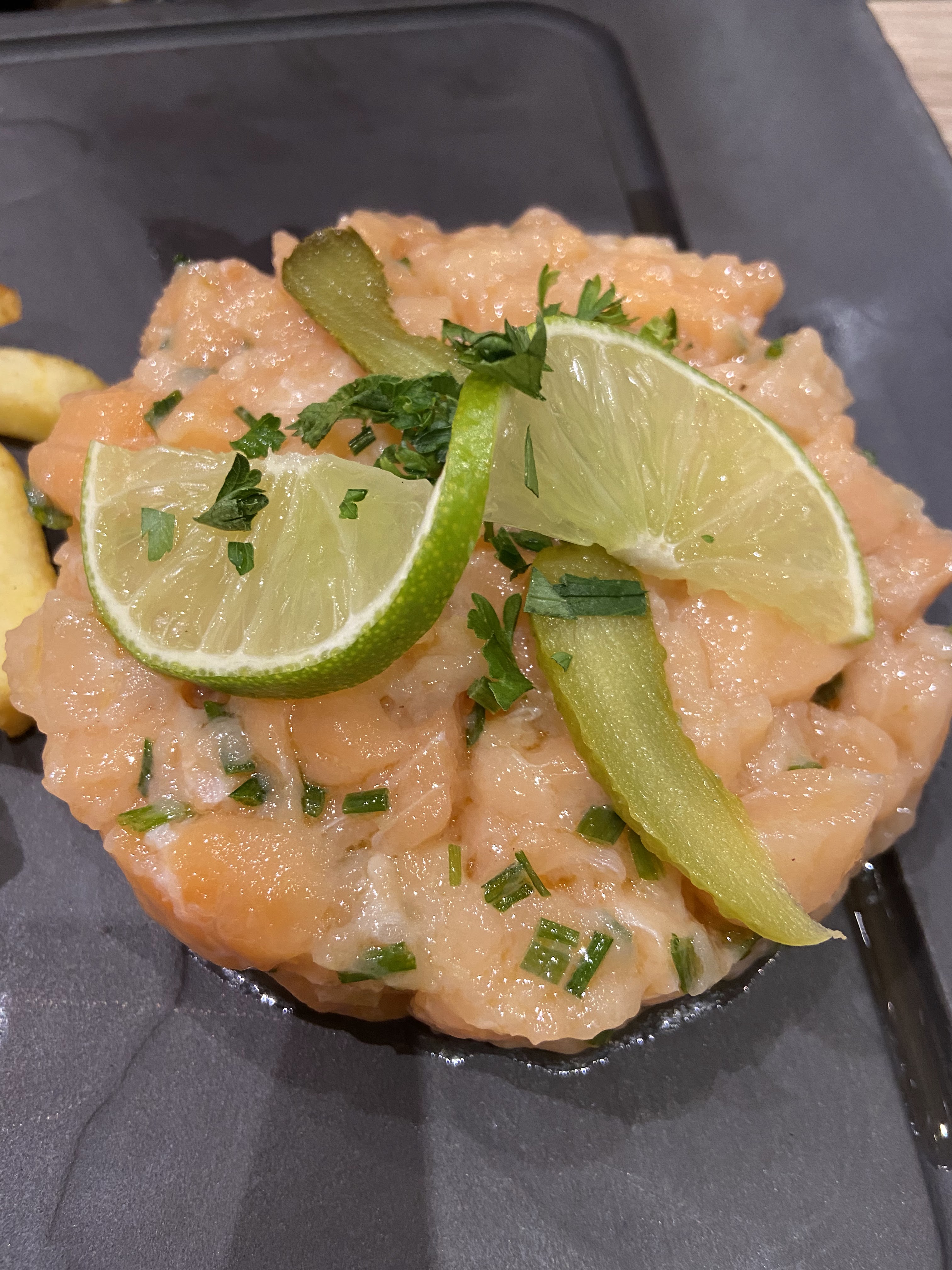 Un bout de plastique retrouvé dans mon tartare de saumon, serveur incompréhensible et qui ne nous comprend pas nous non plus, nous sommes obligés de changer de choix… Sinon, le plat était bon mais niveau qualité prix c’est à revoir!!!