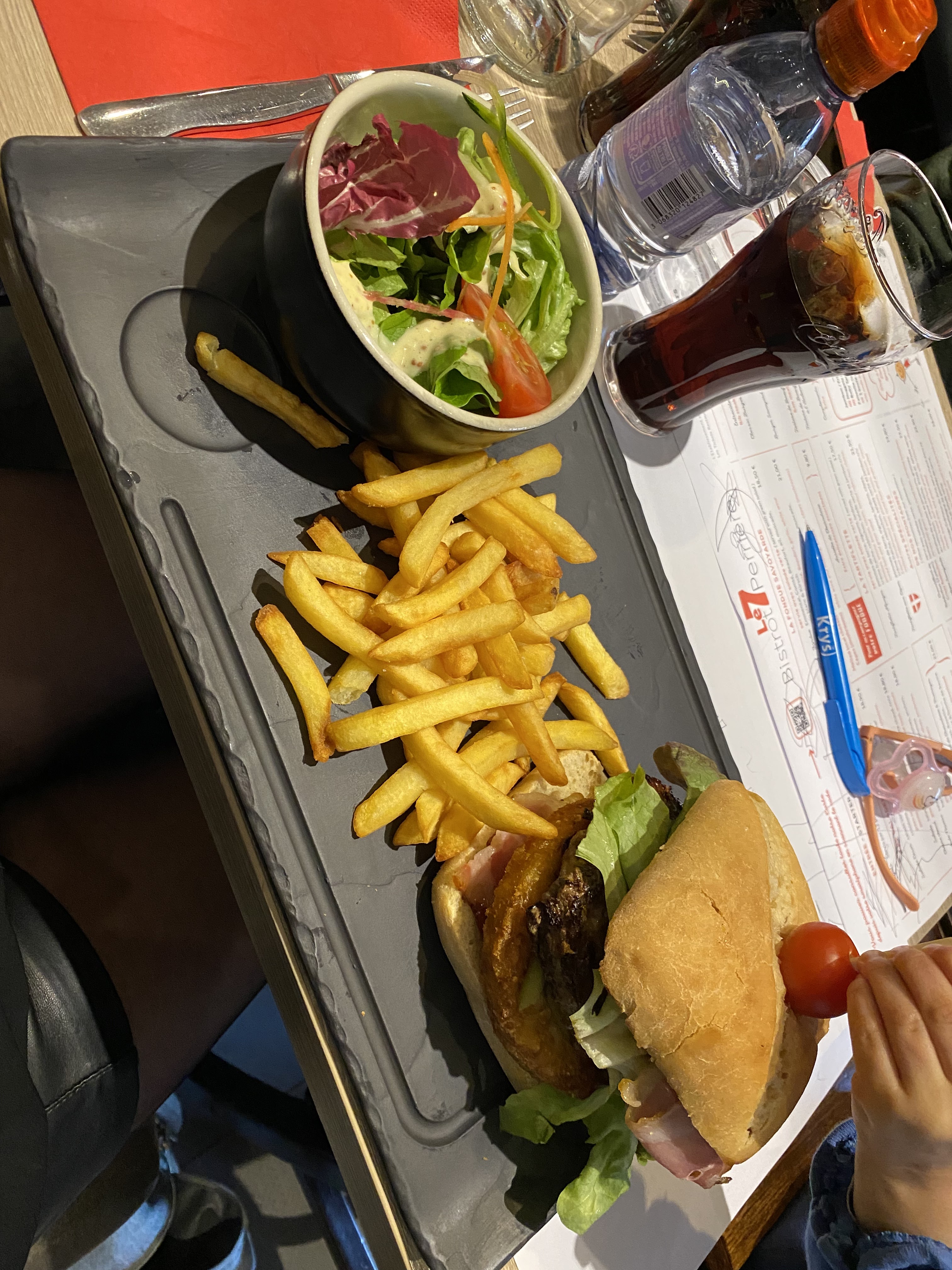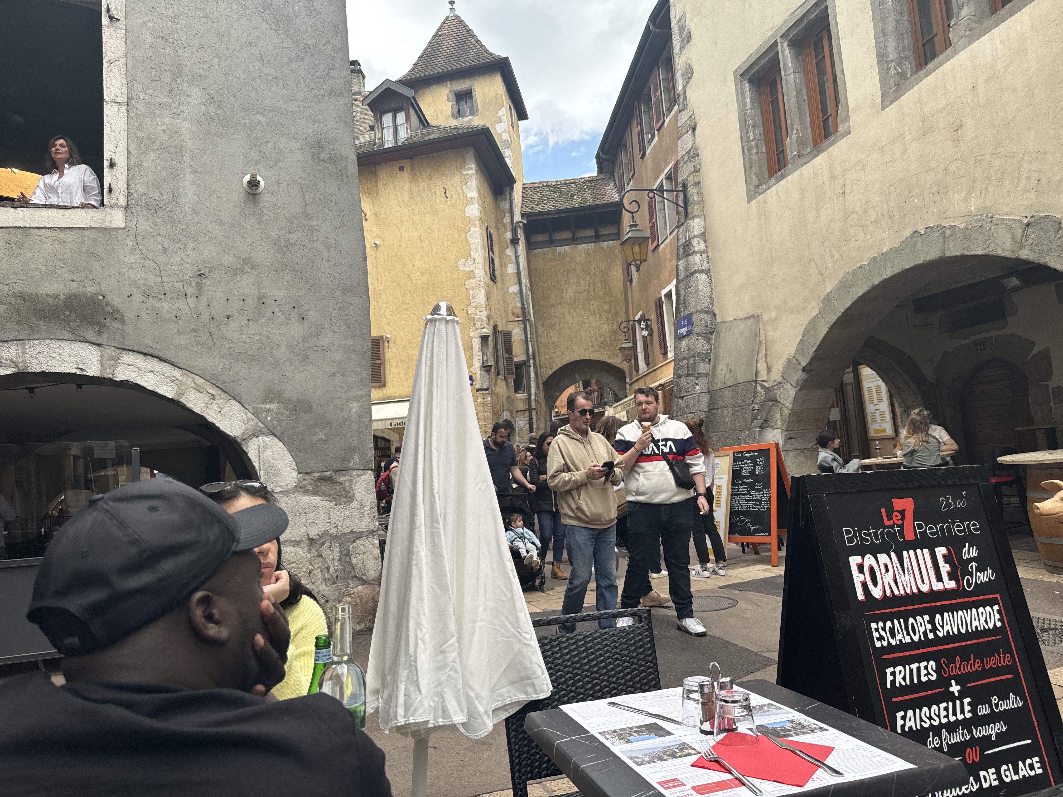 Arrivée tardive de notre part, mais on nous prend quand même, c’est sympa. La cuisine est lambda, les prix élevées mais on est en plein centre d’Annecy. Par contre le coca à 4€ apporté directement à table dans un verre, et servi à partir d’une bouteille plastique depuis le bar. Inadmissible.