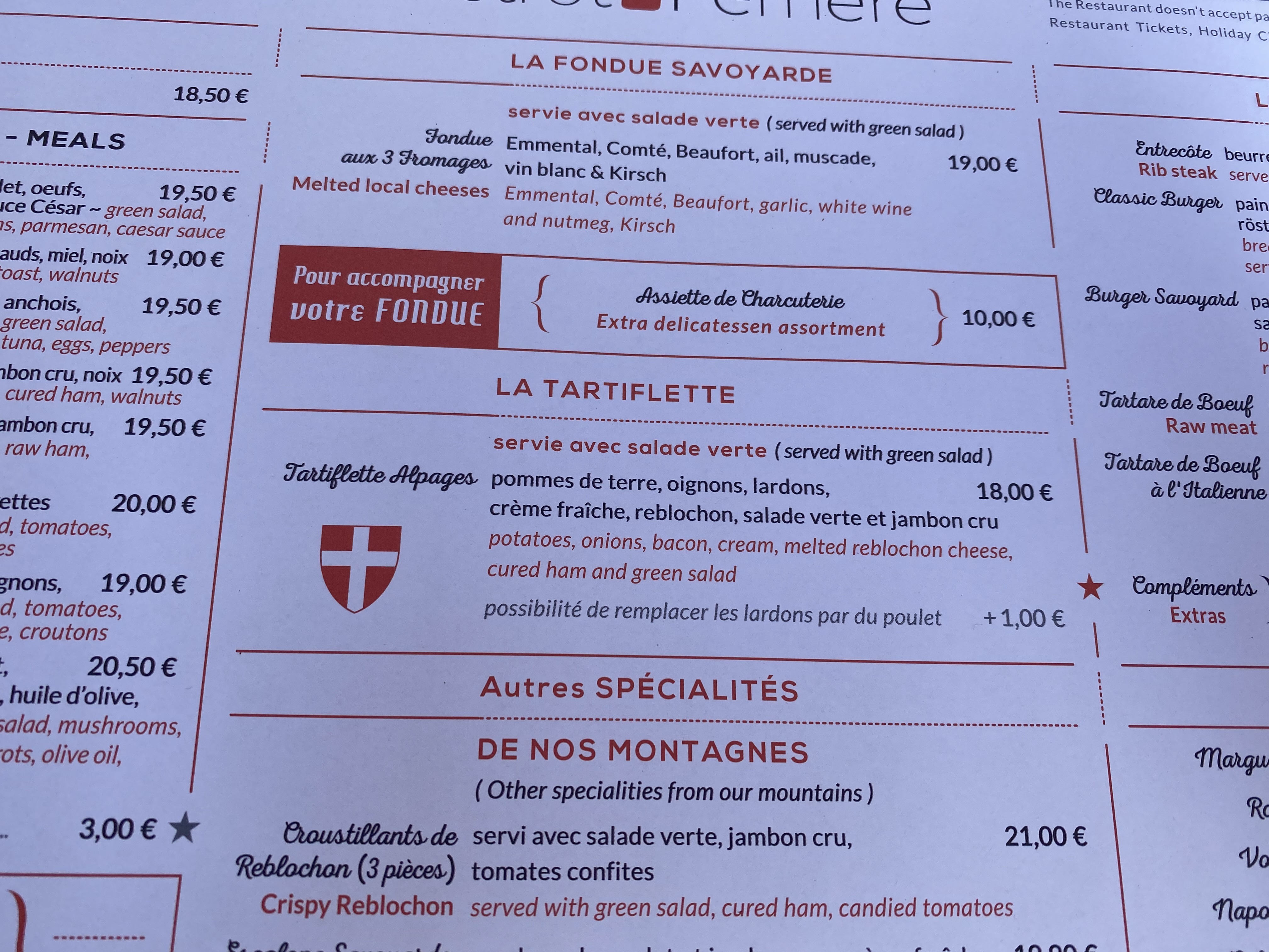 20€ une salade pour avoir des tomates dure dans l’assiette. Heureusement le reblochon rattrape mais bon c’est bof Attention a l’addition vérifier votre rendu monnaie! Il y avait de la tension dans le service