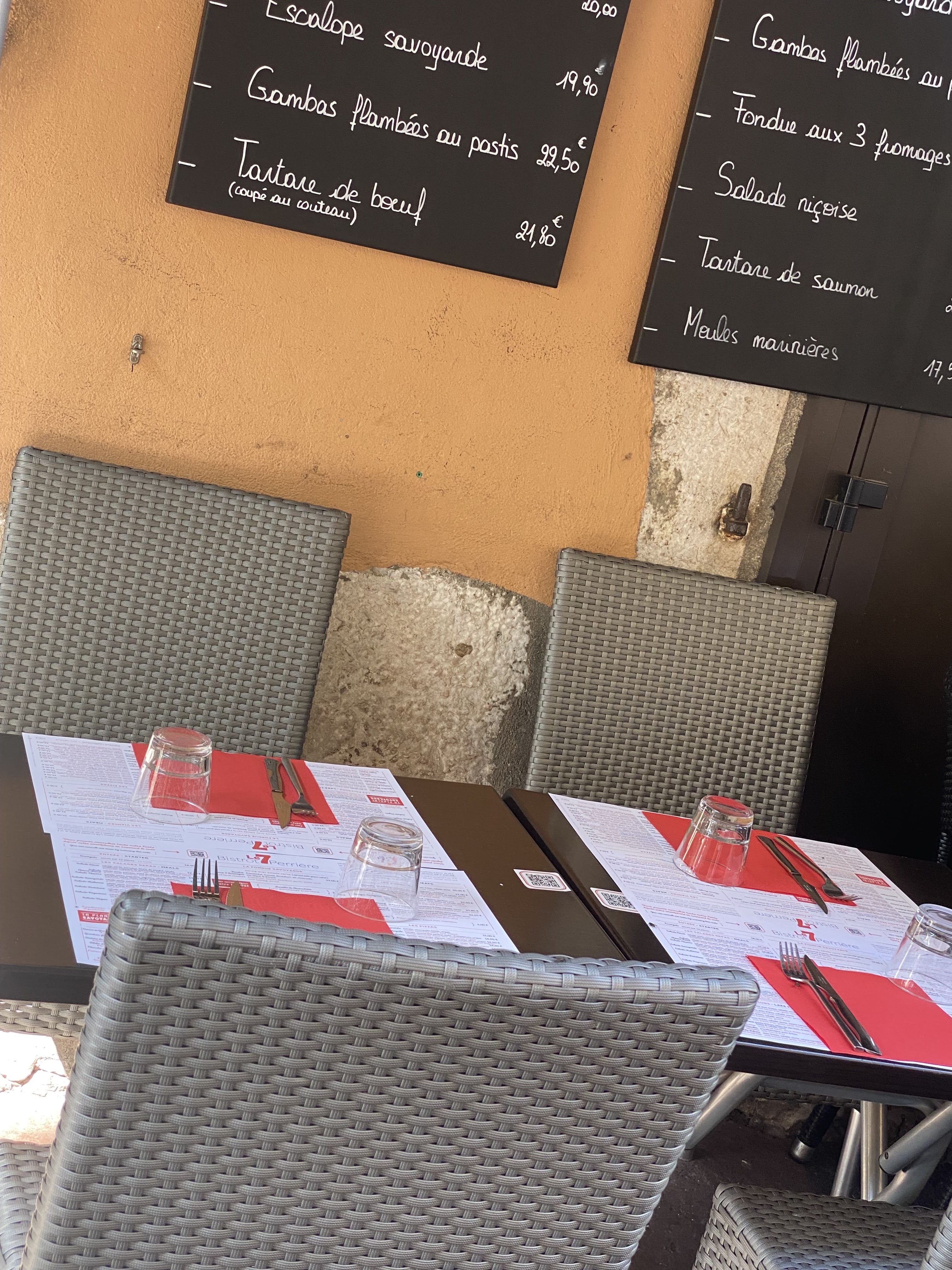 😡 Zéro serait parfait 😡 !!! Fuyez si vous venez seul (e)… pour manger Ce dimanche soir 28 août 2022, À 18h45, alors que la terrasse était à moitié vide, un jeune serveur,, alors que je lui demandais si je pouvais dîner et que j’étais seul, ma rétorqué : « . Alors si vous êtes seul ce sera à l’intérieur ! » Une honte 🤨 cette discrimination, Il faisait encore beau et chaud et je ne vois pas pourquoi j’aurais été à l’intérieur, puni ! 😡😡😡Bien évidemment que je suis parti immédiatement et j’ai été accueilli à bras ouvert dans le restaurant à côté, oùl’on m’a dit : vous vous mettez où vous voulez… 😊 comme dans tous les restaurants d ‘Annecy 🙏 du reste… Ce bistrot Perriere n’a pas besoin de travailler étant donné le nombre de touristes, je veux dire le flût de pigeons qui de toute façon on ne reviendront pas !!!!