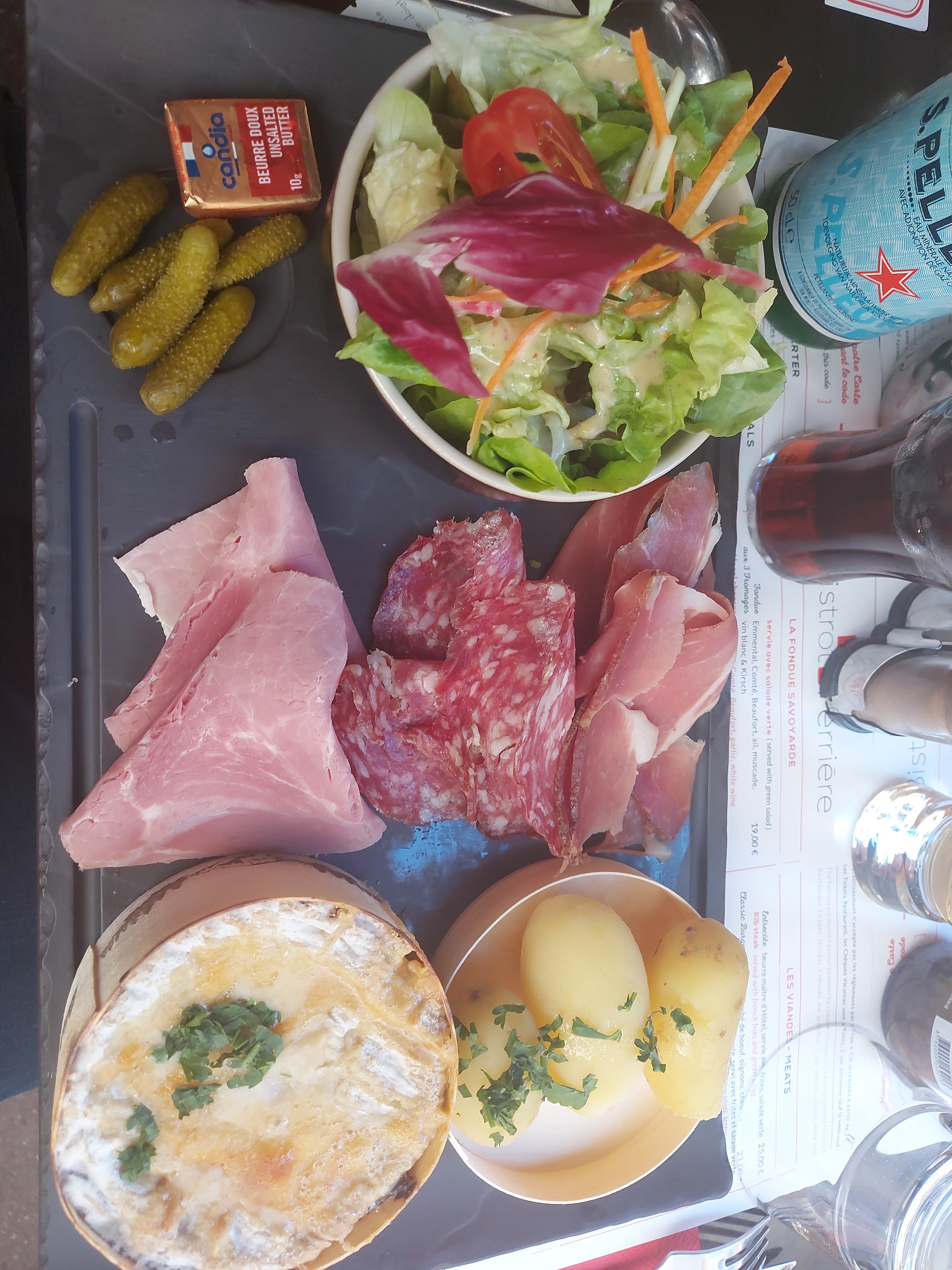 Nous a accueilli à 21h50, après 2 refus ailleurs. Service agréable et sans attente. Ne pouvez plus faire les plats désirés, donc 2 planches savoyardes, simples mais bons fromages et bonne charcuterie, assez copieuse. Rue bondée, plusieurs fois frôlé.