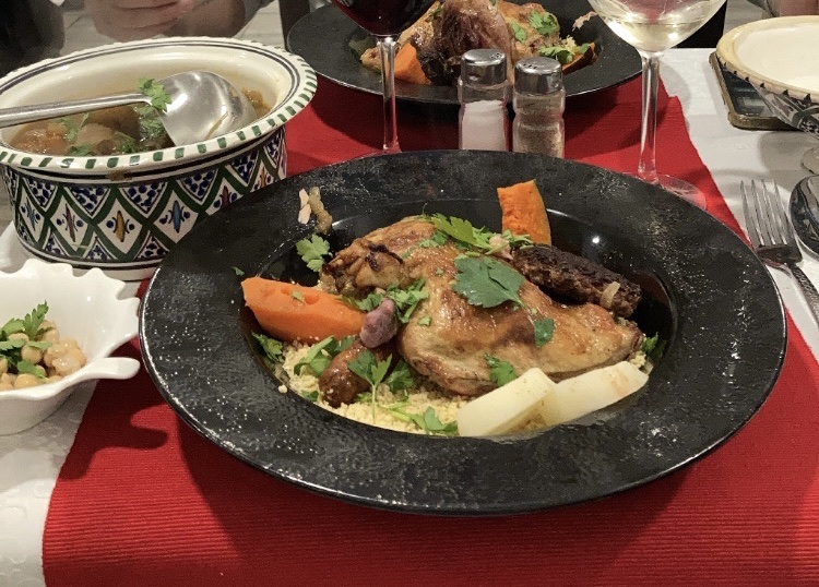 De délicieux couscous mais pas que ! Un filet de daurade et un magret de canard succulents à la cuisson parfaite accompagnés de leur petits légumes fondants. Cuisinier et serveuse aux petits soins.