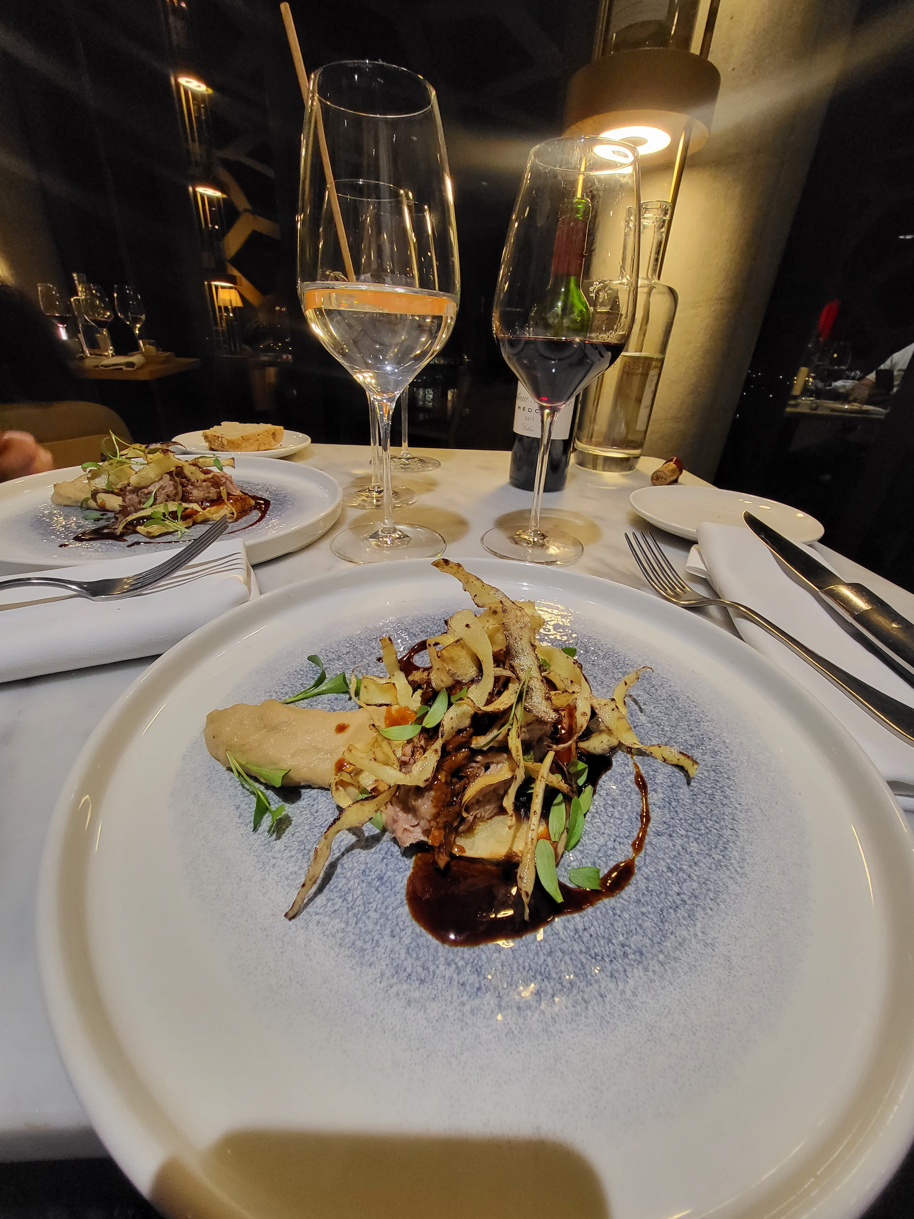 Restaurant panoramique splendide Cadre fantastique Équipe accueillante Plat raffiné et élégant Nous avons apprécié les suggestions de vins et de plat