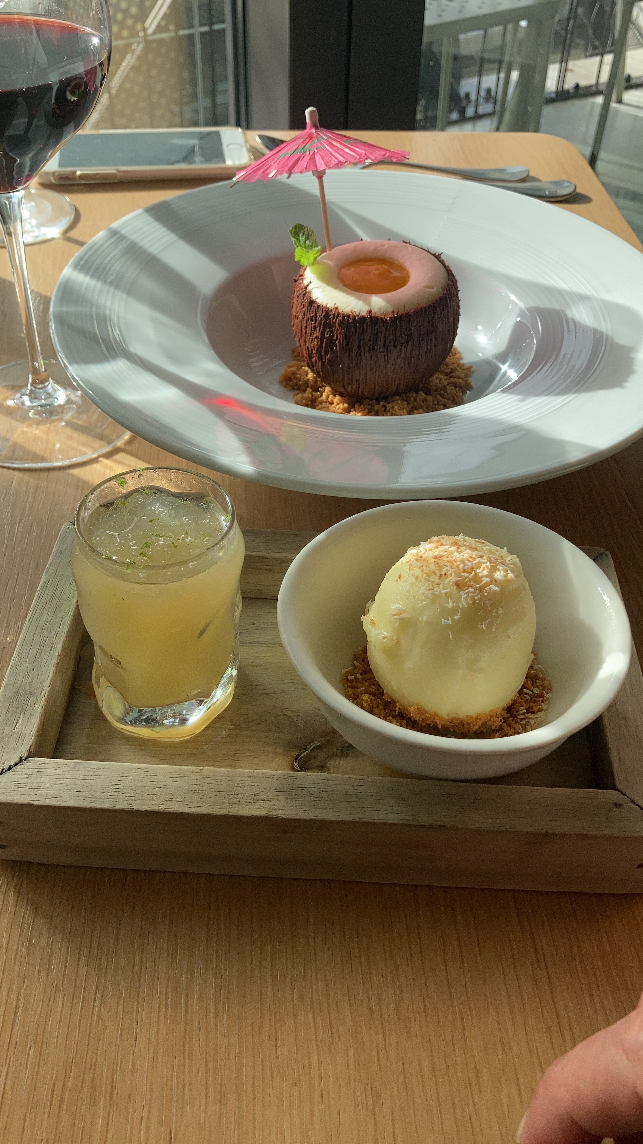 Vaut le détour pour la vue, et pour les desserts.. Réalisés avec beaucoup de soin, de créativité et d'esthétique, de plus, délicieux.. En ce qui concerne les plats, chers, peu goûteux et quantité insuffisante.