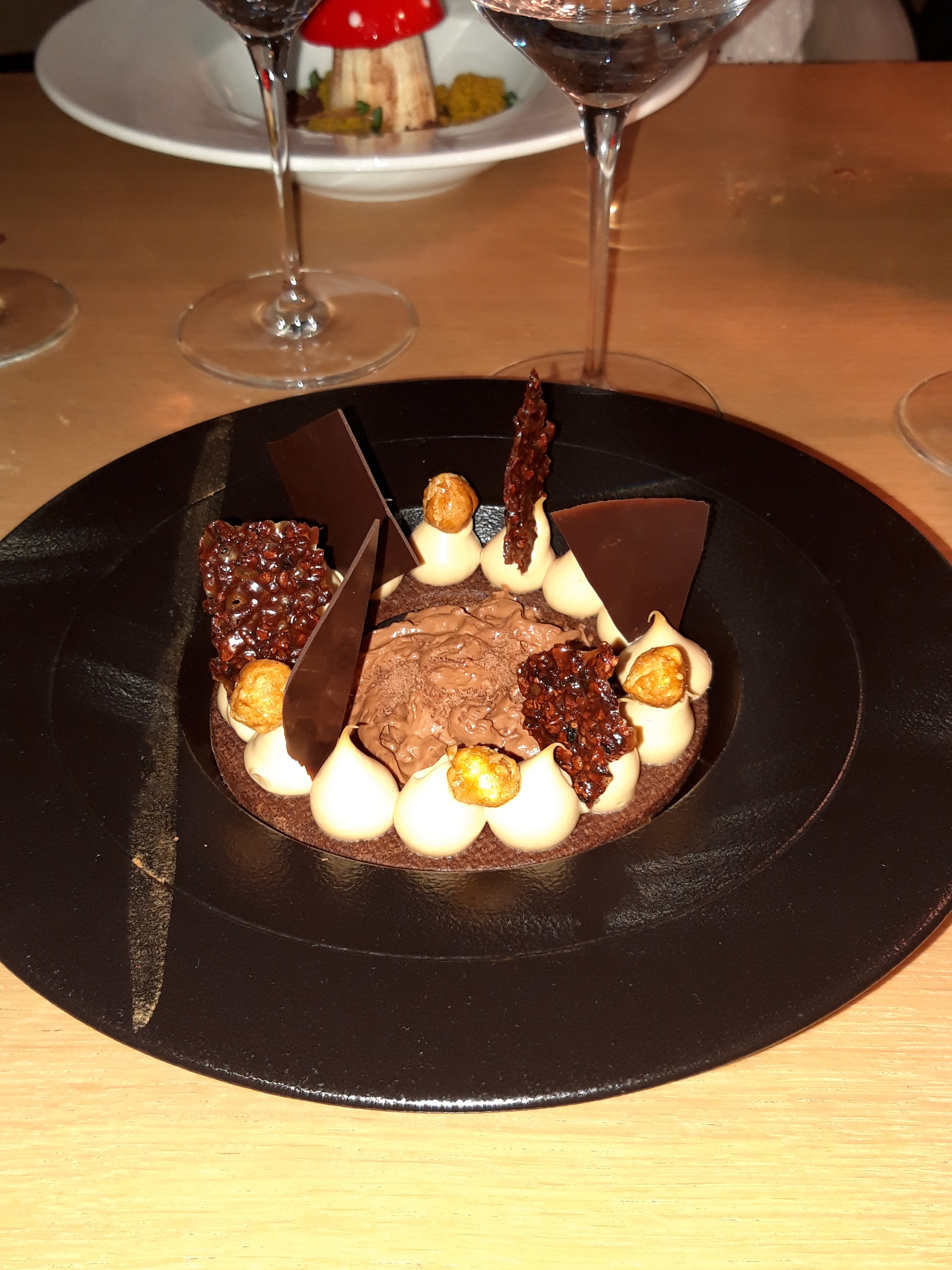 Le poulet des landes était très bon. Pour l’entrée, un peu déçu (ça reste très bon, très belle présentation) mais j’ai pas forcément retrouvé le réglisse dans l’encornet farci à la chair à saucisse. Et pour l’entrée de ma copine: maquereau confit à l’huile d’olive, je pense que les crevettes peuvent être mise en valeur d’une meilleure manière en terme gustatif. Nous n’avons pas testé de dessert.