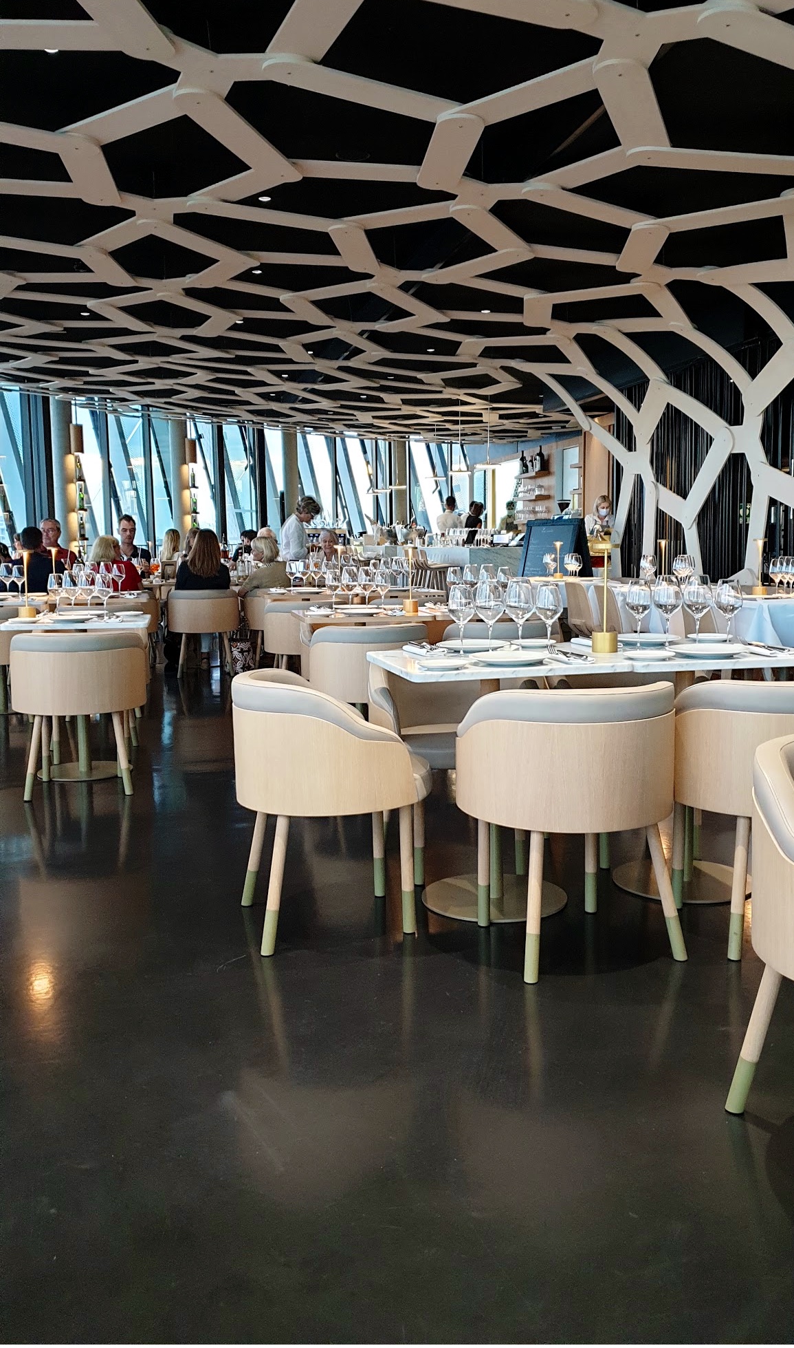 Je n'aime généralement pas la gastronomie, mais cet endroit avait une vue (partiellement obstruée par la structure métallique du bâtiment) et j'ai aimé le fait qu'ils essayaient de maintenir leur empreinte carbone à un faible niveau. Ce que je n'ai pas aimé, c'est que le plat végétalien était au même prix que les plats de viande. Cela n’encourage pas les convives à faire un choix végétalien. Le personnel d'étage était très bon, mais le temps entre les plats était ridicule pour un restaurant pas à moitié plein. J'ai dû annuler mon dessert car nous avions rendez-vous l'après-midi. Je suis tombé déçu par une autre expérience gastronomique.