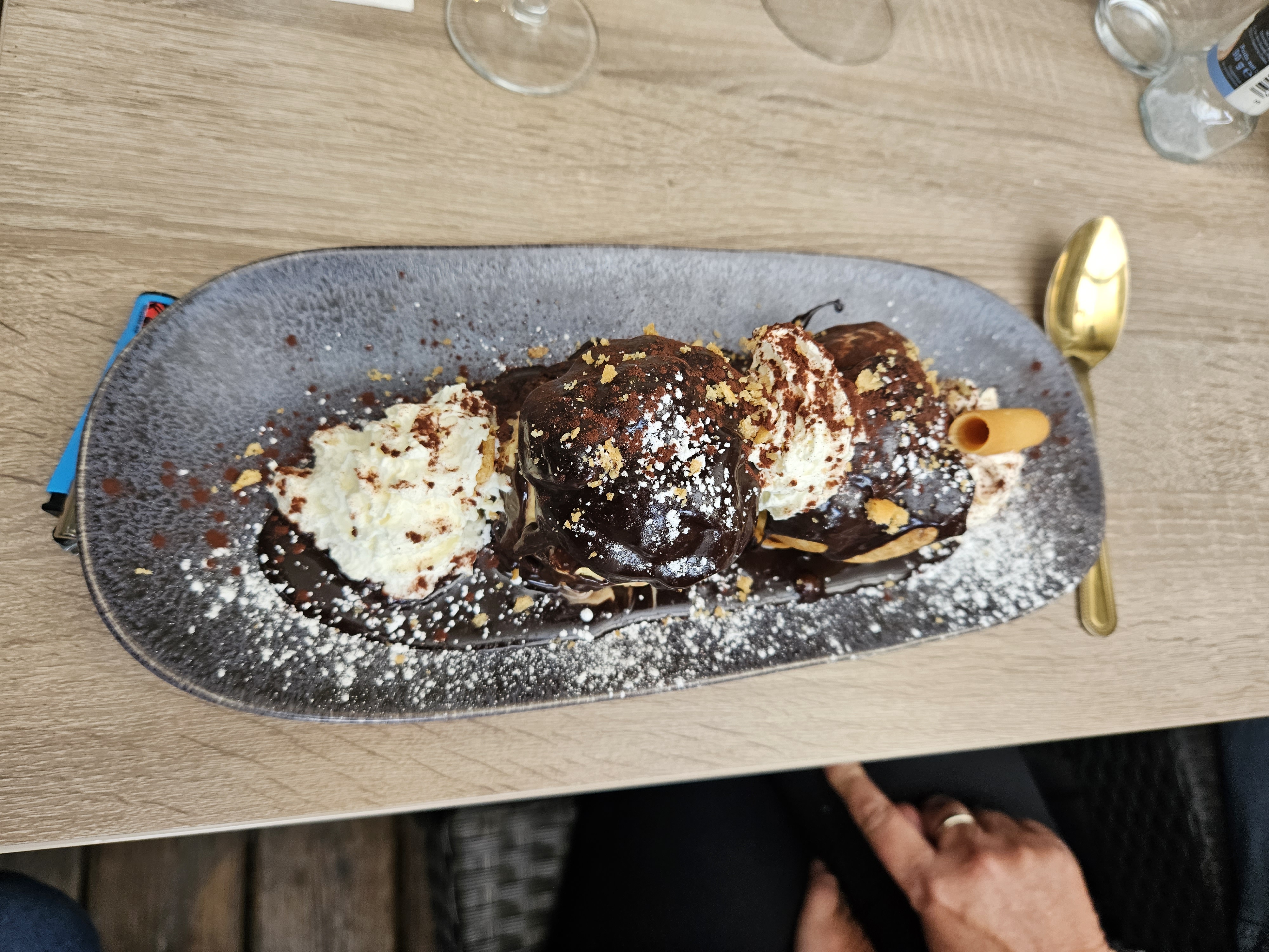 Veille de l ascension, bien reçu, rouille de sèche sétoise EXCELLENT Baba au rhum avec Beaucoup de rhum, MIAM et maison, arrêtez vous et n hésitez pas,l attente ce soir un peu longue mais ça vaut le coup .(raison poisson frais) Loup pour ma femme avec MEGA profiteroles au chocolat maison aussi EXCELLENTiSSIME aussi. Arrêtez vous !!!! Désolé pour les photos nous avons dévoré c était MAGNIFIQUE et très bon et frais