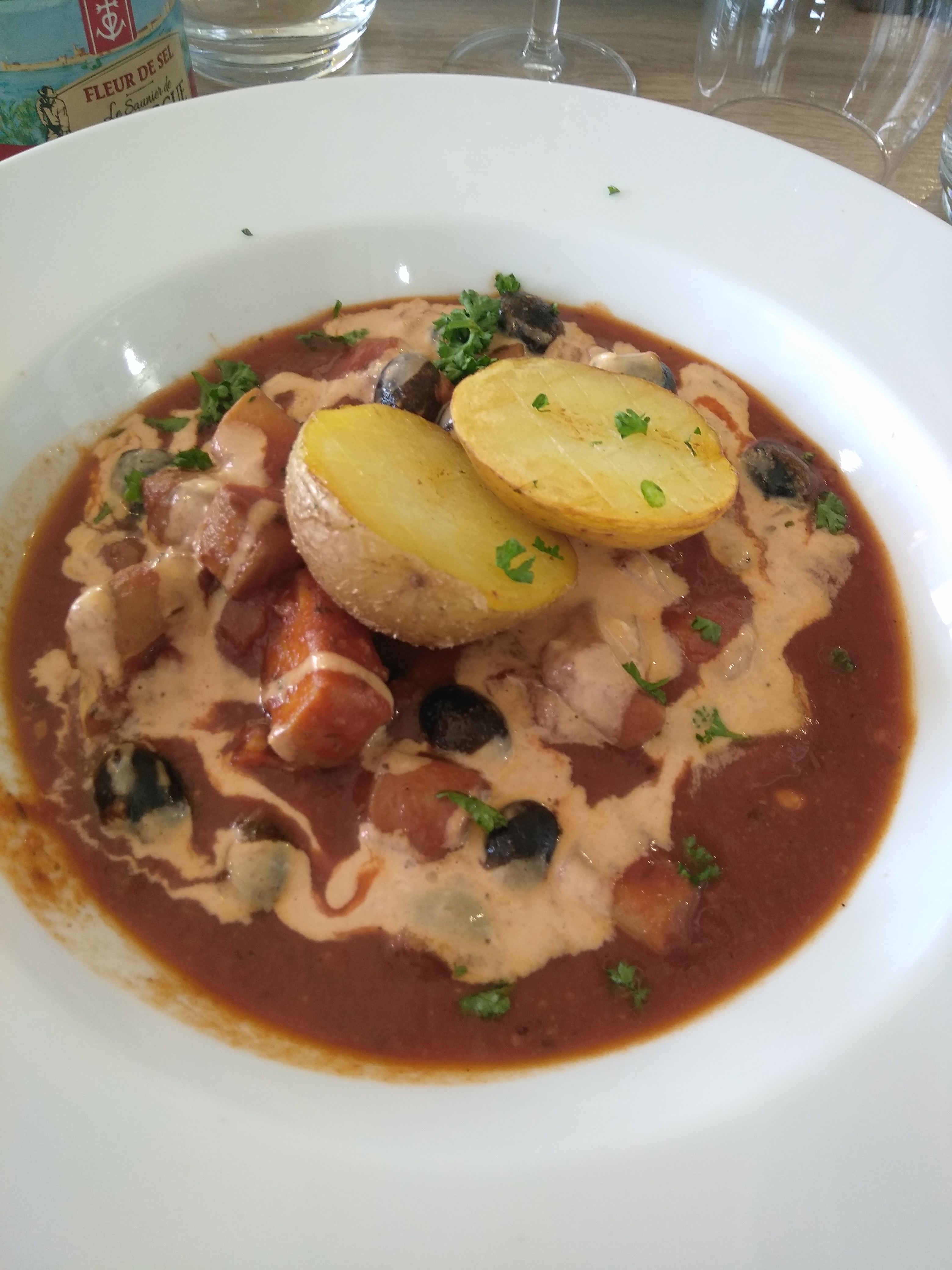 Bien content d'avoir trouvé un restaurant qui propose des plats à emporter malgré le couvre-feu. On c'est régalés avec deux plats locaux (moules farcies et rouille de sèche).