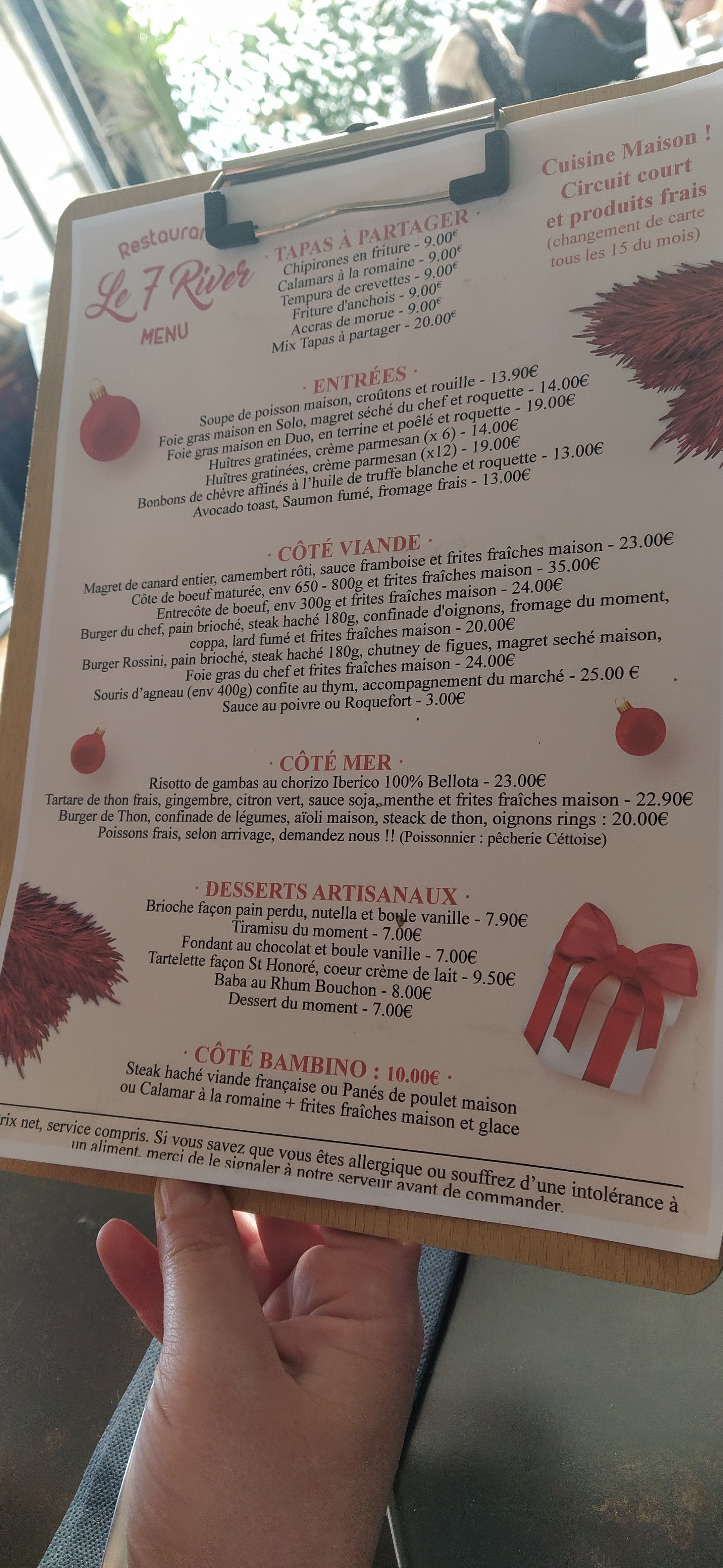 Nous avons partagé au 7 RIVER un repas de famille le 7 mai , l’accueil est chaleureux, le service parfait , le repas excellent avec des produits de qualité. Merci à la Cheffe et à son équipe pour nous avoir fait passer une très bonne soirée .